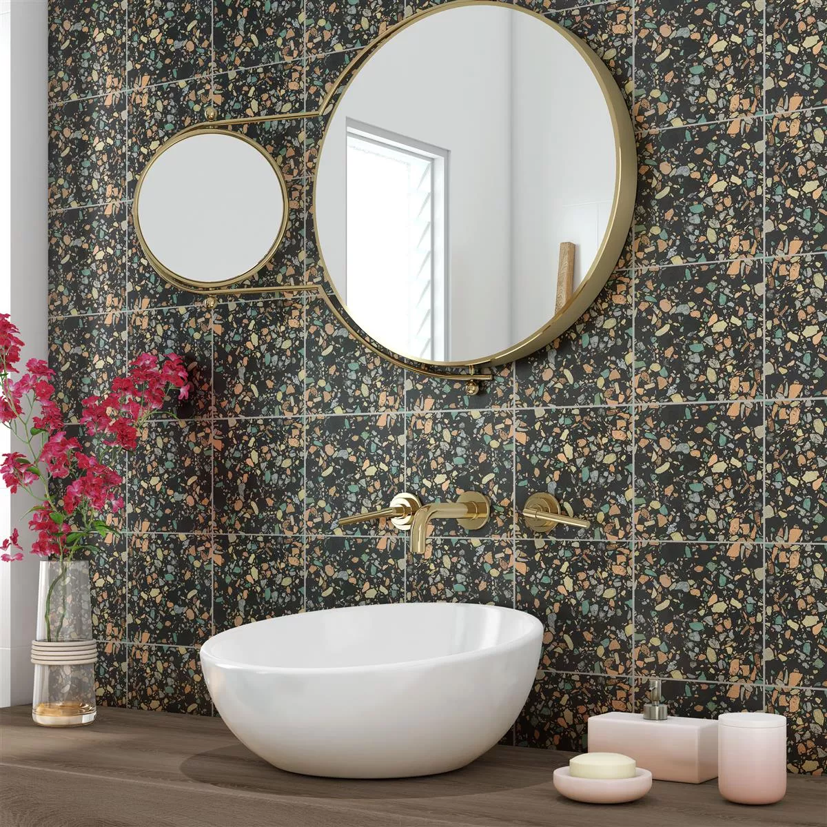 Die Bodenfliesen Liberty Bunt Schwarz mit einer Größe von 18,5x18,5cm vereinen modernes Design mit praktischer Funktionalität. Die Kombination aus Schwarz und bunten Akzenten verleiht Ihrem Raum eine zeitgemäße Ästhetik, während die hochwertige Herstellung aus Feinsteinzeug eine langlebige und ansprechende Lösung bietet.