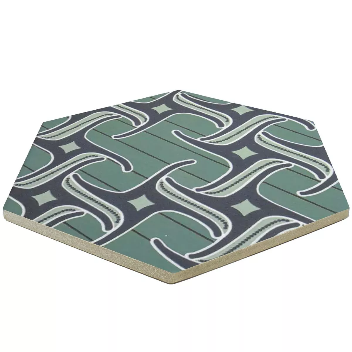 Die Feinsteinzeug Fliesen "Modena Hexagon Decor 4" sind ein Kunstwerk für Ihren Raum. Mit einer Stärke von 10mm sind sie perfekt für Nassbereiche, Dusche, Bad, Küche, Wohnraum und Innenbereiche. Die matte Oberfläche und das Ornament-Motiv in Blau-Grün schaffen eine einzigartige Atmosphäre.