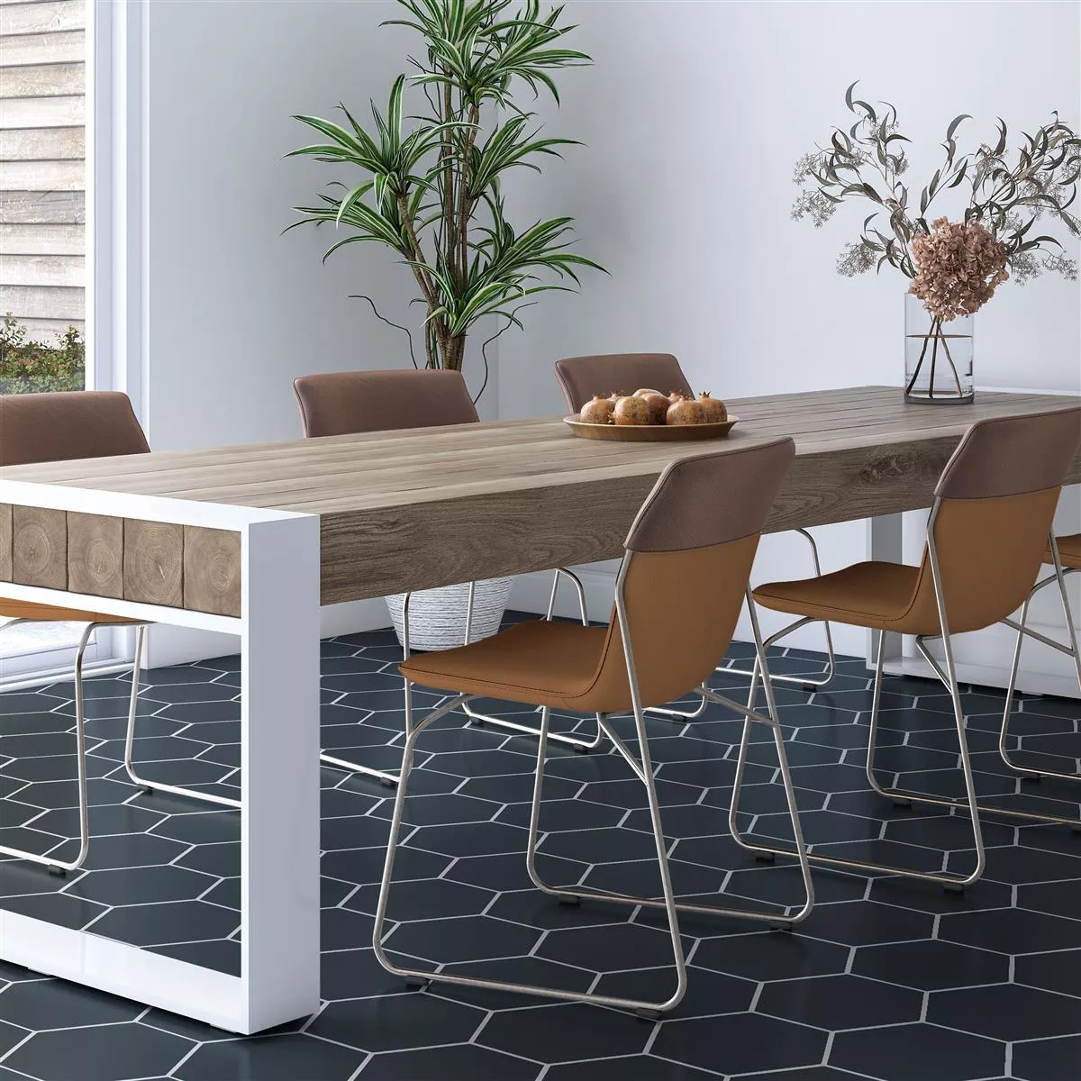 Die Feinsteinzeug Fliesen "Modena Hexagon Uni dunkelblau" setzen mit ihrem charmanten Hexagon-Design und der dunkelblauen Farbe stilvolle Akzente. Mit einer Stärke von 10mm und einer Rutschhemmung von R10 sind sie ideal für Nassbereiche, Dusche, Bad, Küche, Wohnraum und den Innenbereich geeignet.