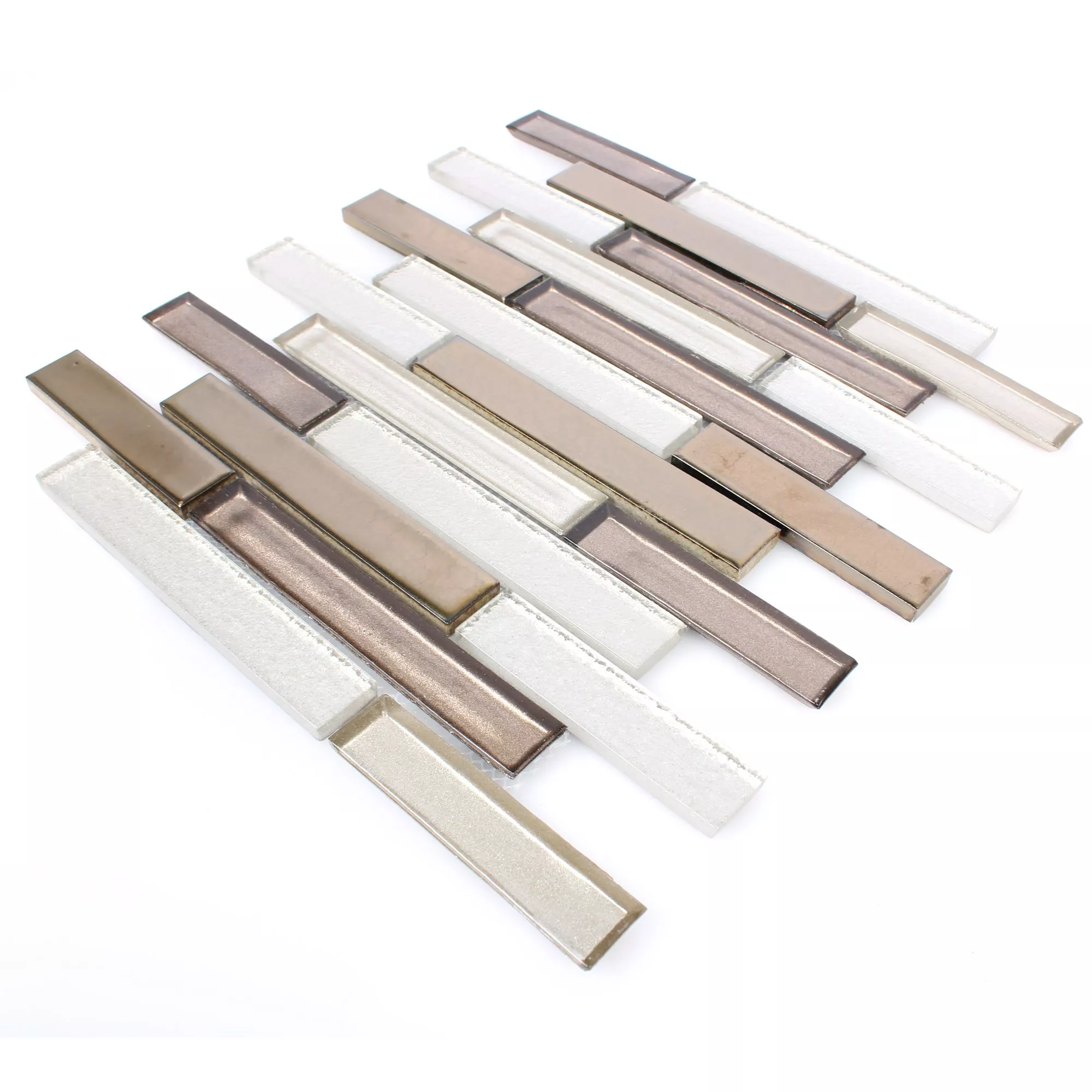 Die Suche nach den perfekten Fliesen für das eigene Zuhause gestaltet sich oft alles andere als einfach. Sowohl für den Innen- als auch für den Außenbereich finden Fliesen häufig Anwendung. Fliesen, die sowohl durch Ihre exzellente Qualität als auch durch ein ansprechendes Design überzeugen, werden Ihnen garantiert lange Freude bereiten und sind daher immer die beste Wahl. Das Oberflächenmuster der Glas Keramik Mosaikfliesen Permoser in Kupfer Weiß ist sowohl matt als auch glänzend und ihr Mattenmaß beträgt 25 x 30cm. Die Steingröße der Glas Keramik Mosaikfliesen Permoser hat die Maße 23 x 98 - 23 x 148mm und die Stärke liegt bei 8mm. Der Preis dieser Fliesen liegt bei 10,50EUR pro Matte. Nach Abschluss Ihrer Bestellung werden die Fliesen innerhalb von zwei bis vier Werktagen zu Ihnen nach Hause geliefert.