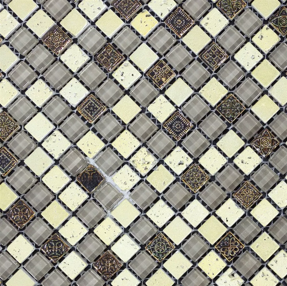 Glas Marmor Mosaikfliesen Majestic Silber Braun