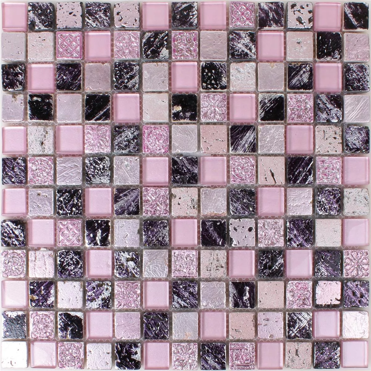 Glas Naturstein Mosaikfliesen Colicos Pink Rosa Schwarz