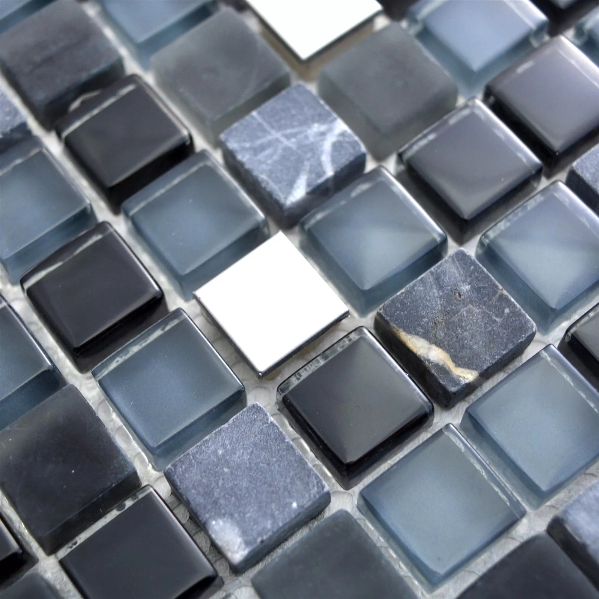 Glas Naturstein Stahl Mosaikfliesen Romeo Schwarz