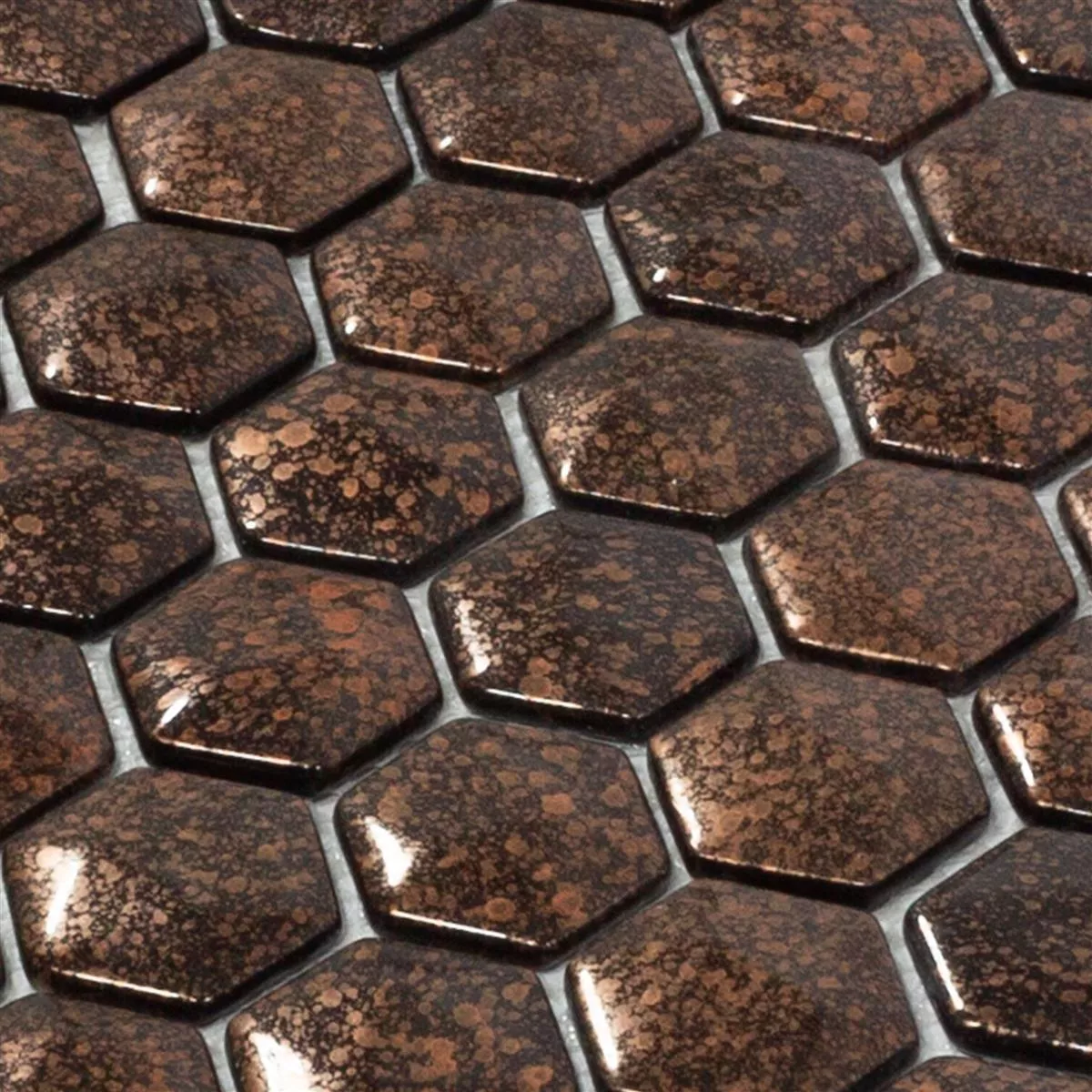 Glasmosaik Fliesen Leopard Hexagon 3D Bronze