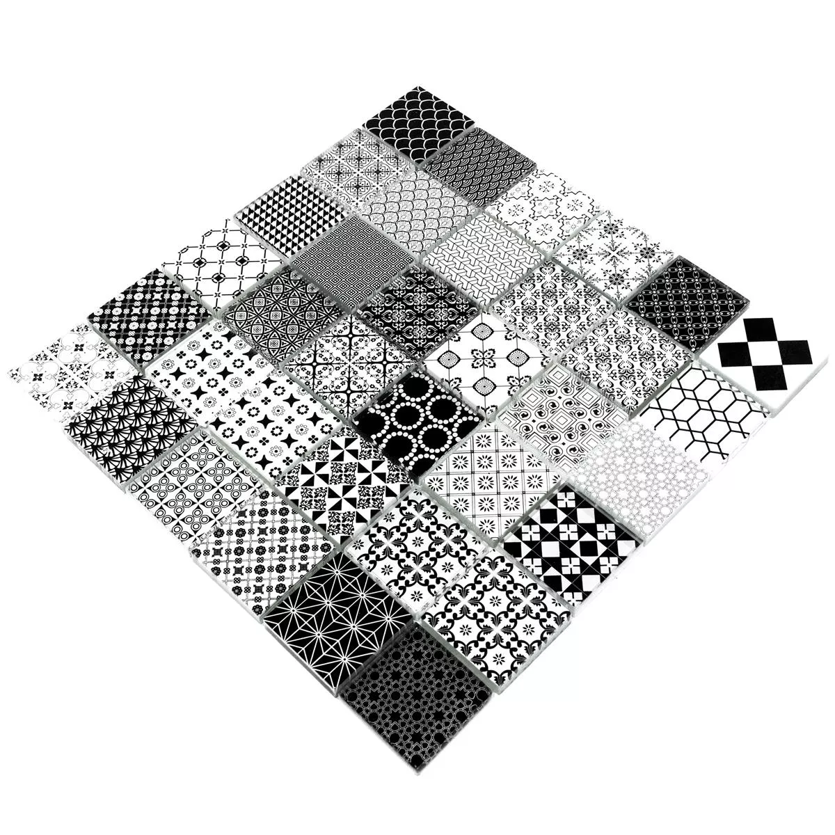 Glasmosaik Fliesen Ornamento Schwarz Weiß