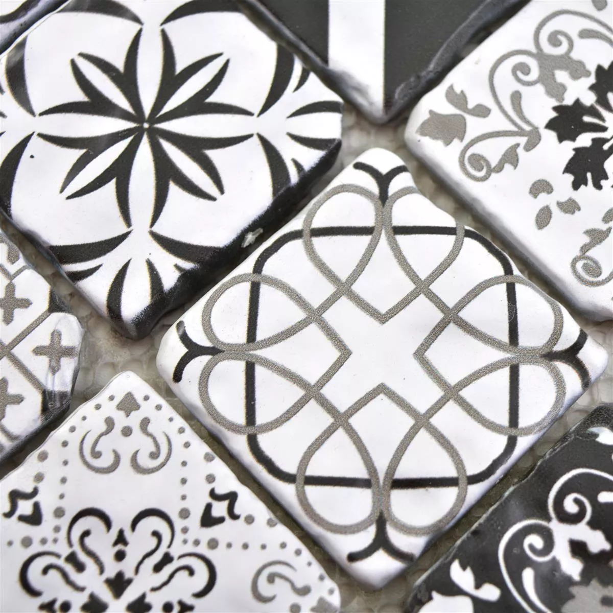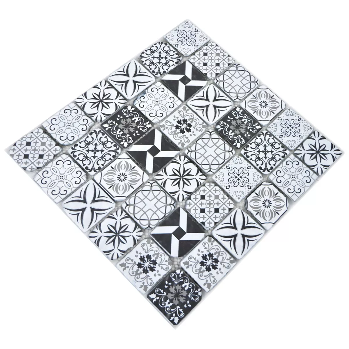 Glasmosaik Fliesen Starlite Retro Schwarz Weiß 48