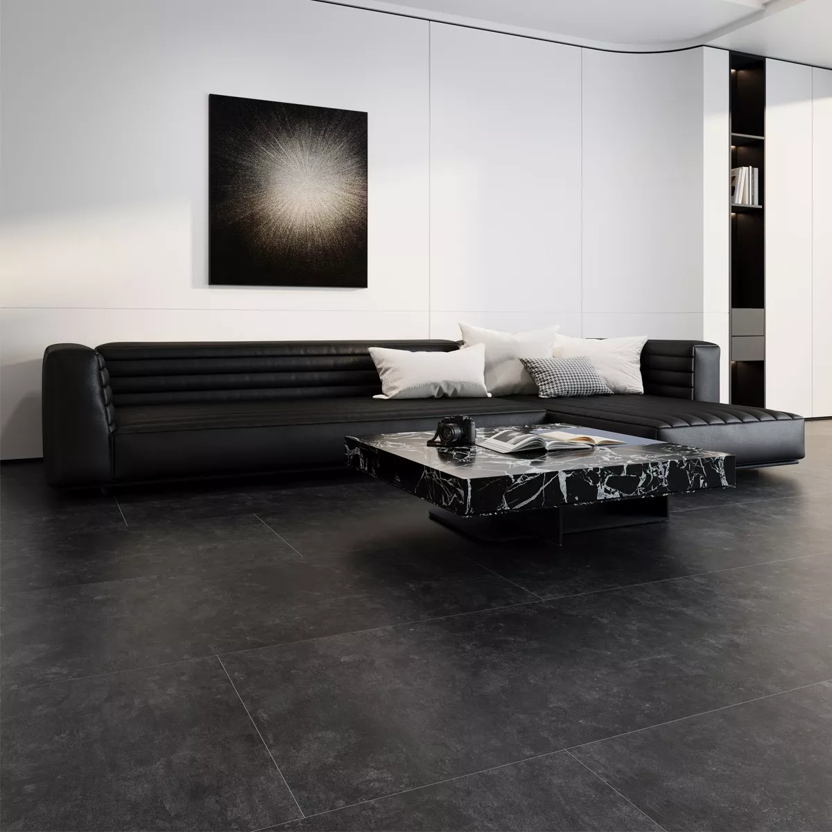 Diese Feinsteinzeug Bodenfliese aus der Jamaica Kollektion bringt eine elegante Metalloptik in jeden Raum. Die Fliesen sind in einem attraktiven Anthrazit erhältlich und haben eine matte Oberflächenbeschaffenheit, die eine edle Optik erzeugt. Diese Fliesen sind ideal für die Küche, das Badezimmer, den Waschraum, den Flur oder das Wohnzimmer und auch als Gewerbefliese einsetzbar.