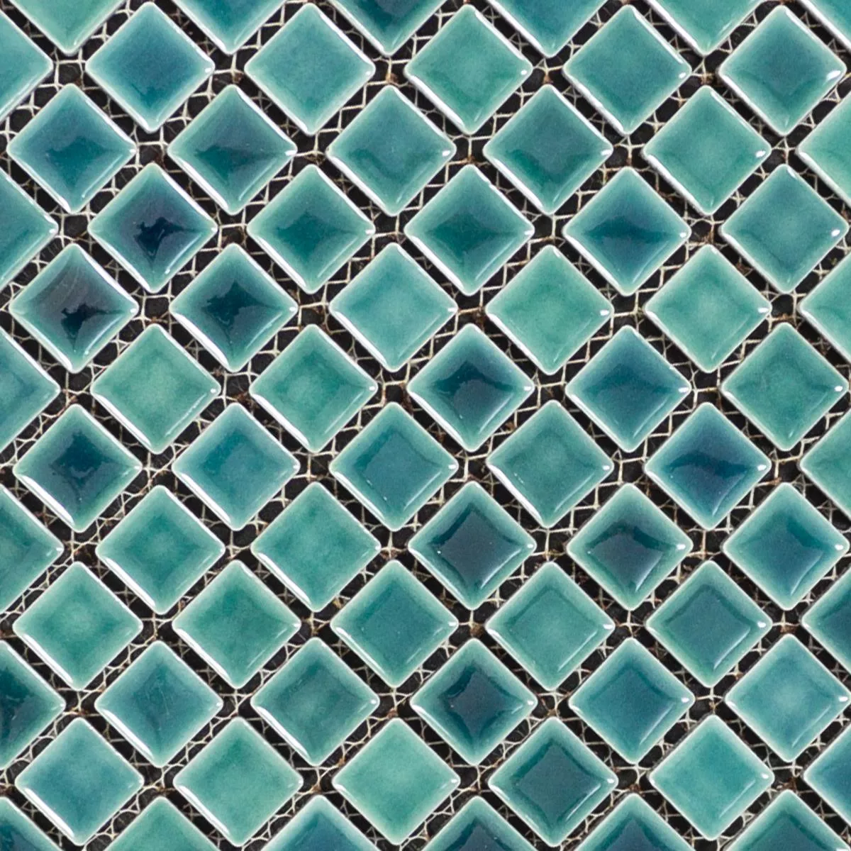Die Keramikmosaik Fliese Lahti in den Farben Türkis und Grün ist eine elegante und praktische Wahl für verschiedenste Innenräume. Mit ihrer glänzenden Oberfläche verleiht sie Duschwänden, Küchen, Badezimmern, Fluren, Wohnzimmern, Abstellräumen und Waschräumen eine moderne Note.