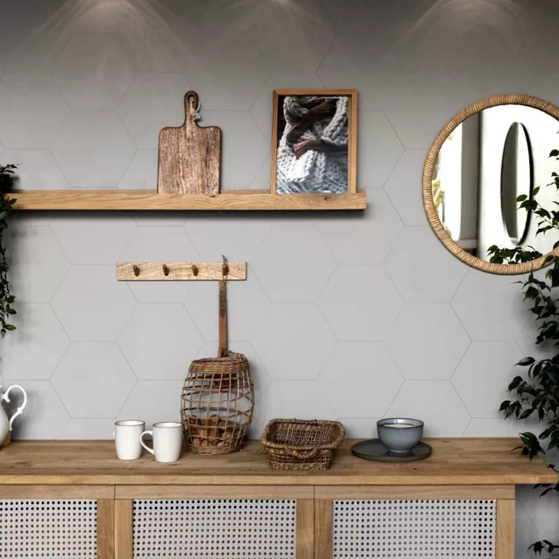 Loire Hellgrau Sechseck Strukturiert 23x27 cm