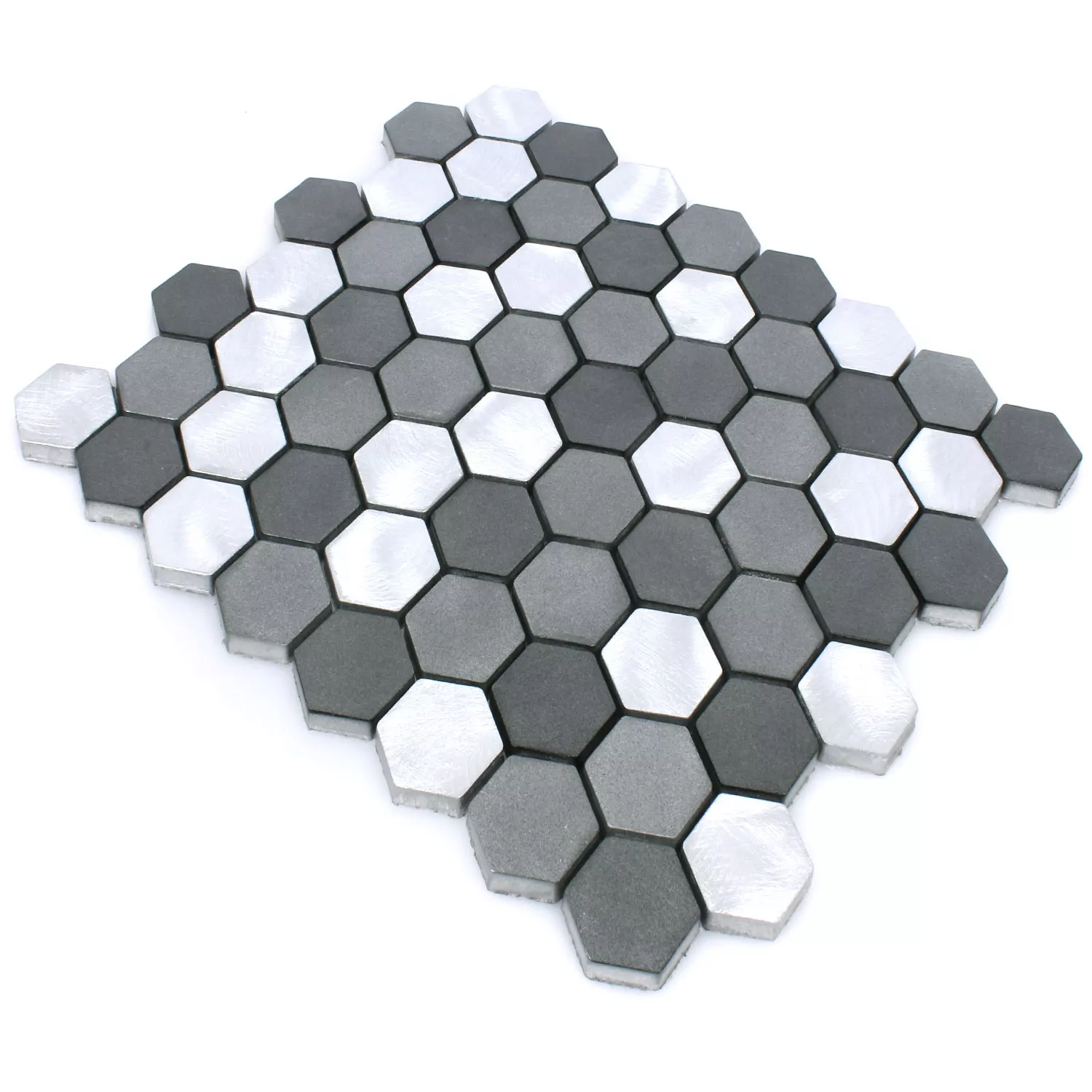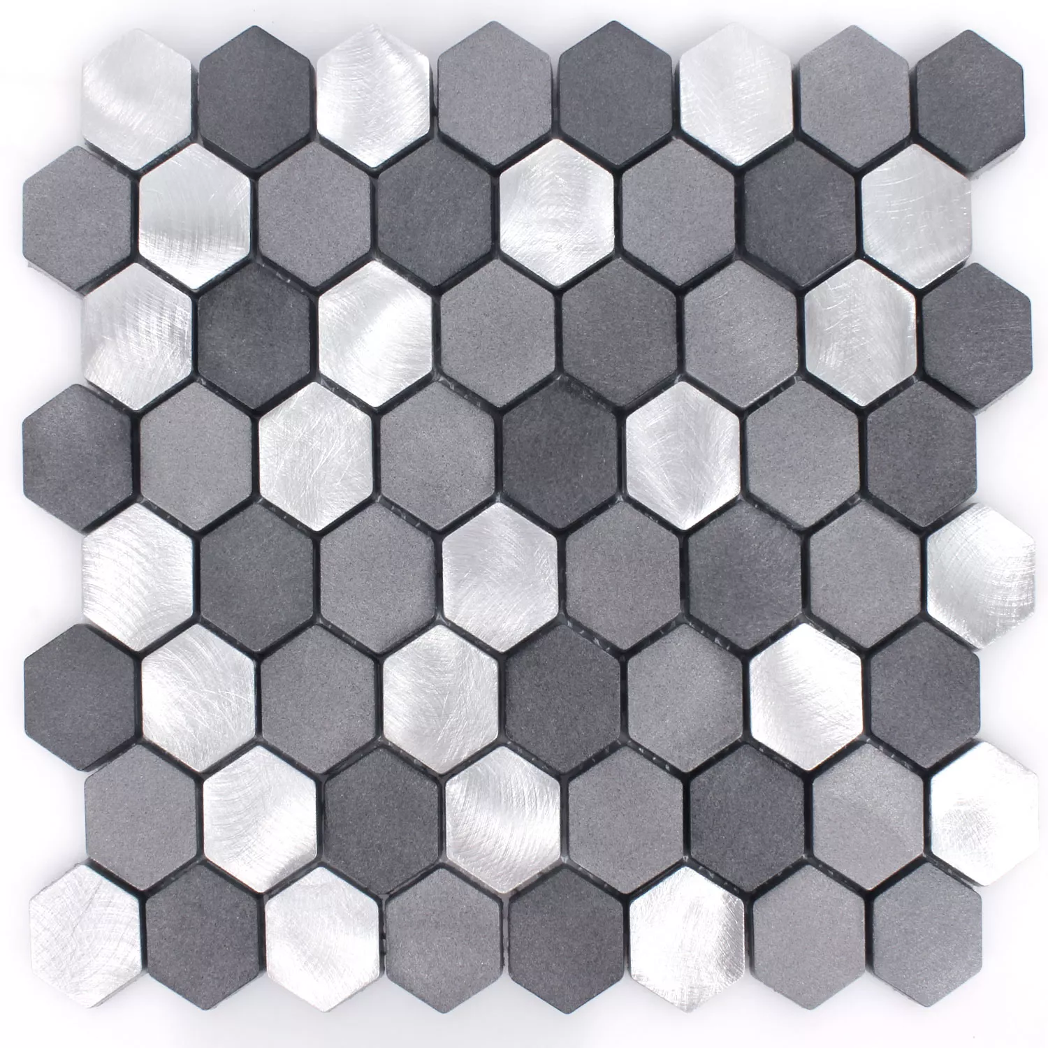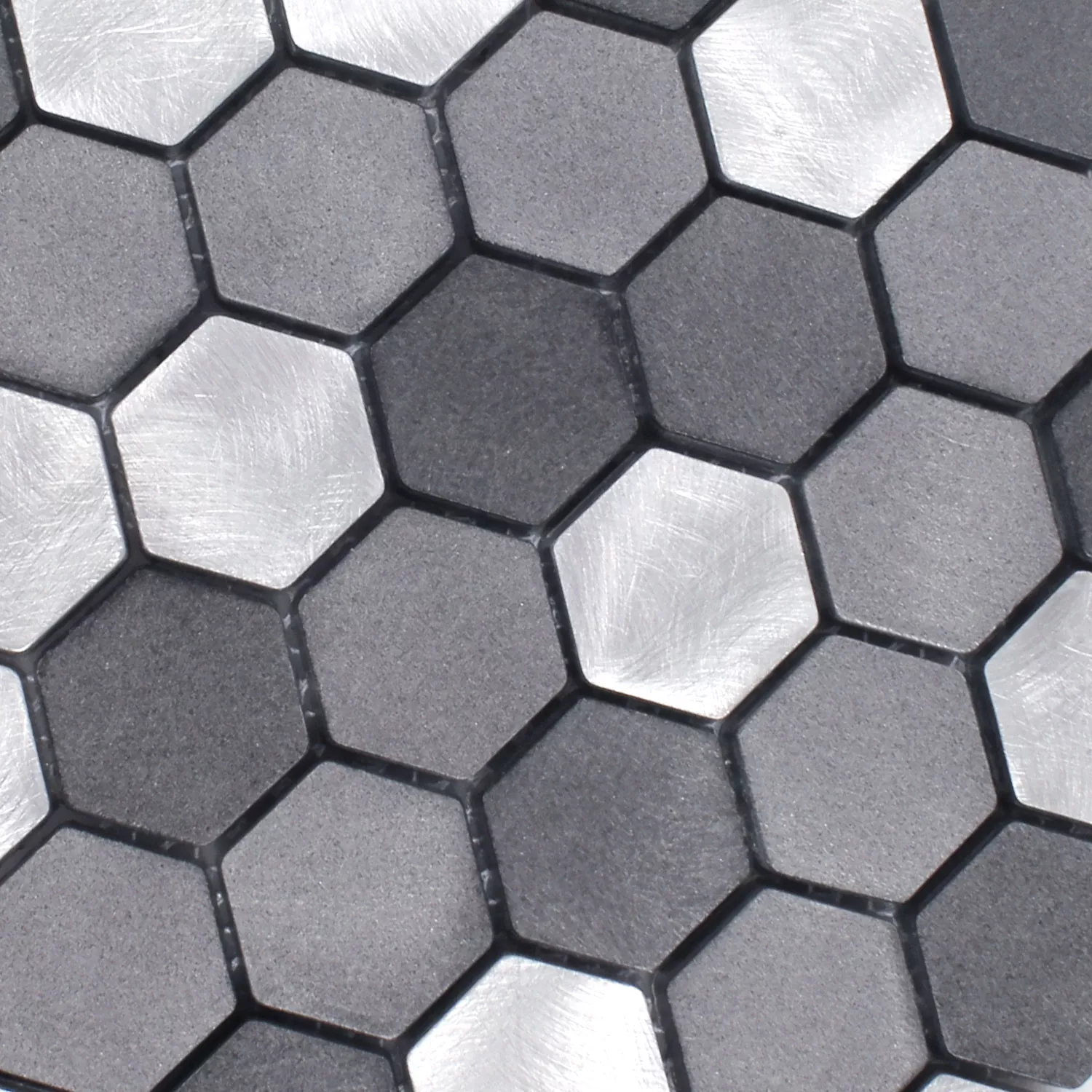 Mosaikfliesen Aluminium Apache Sechseck Schwarz Silber