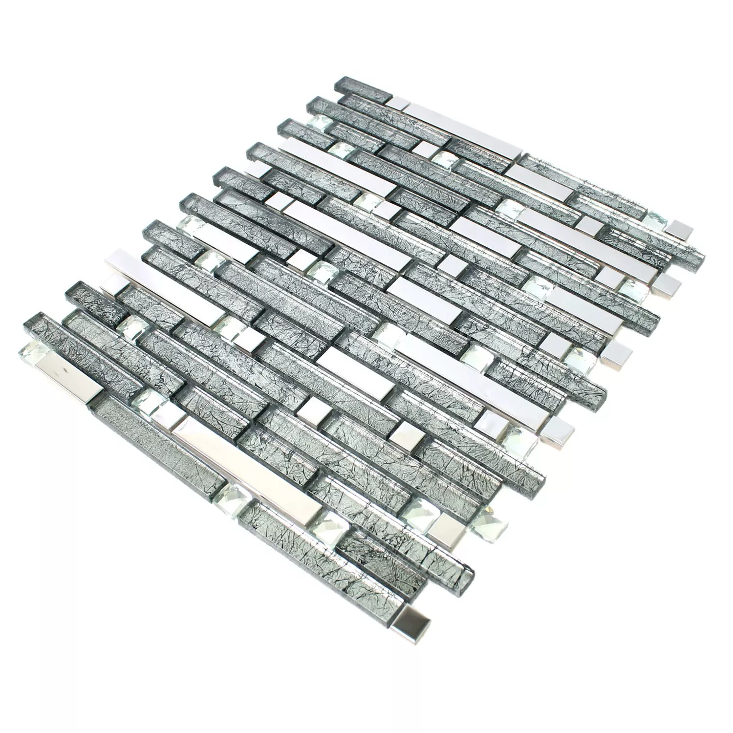 Die Mosaikfliesen Daphne Silber Diamant sind der ideale Begleiter für die moderne Wohnung. Sie passen als schicke Wandfliese in unterschiedliche Räume. Der Kreativität sind hier keine Grenzen gesetzt. Man kann mit diesen Fliesen eine ganze Wand verkleiden oder auch einzelne Abschnitte als Regalabschluss oder zur besseren Struktur im Bad. Die Fliesen sind rechteckig geschnitten und auf einer Trägermatte aufgeklebt. Mit dieser Matte sind die Fliesen optimal zu verarbeiten.