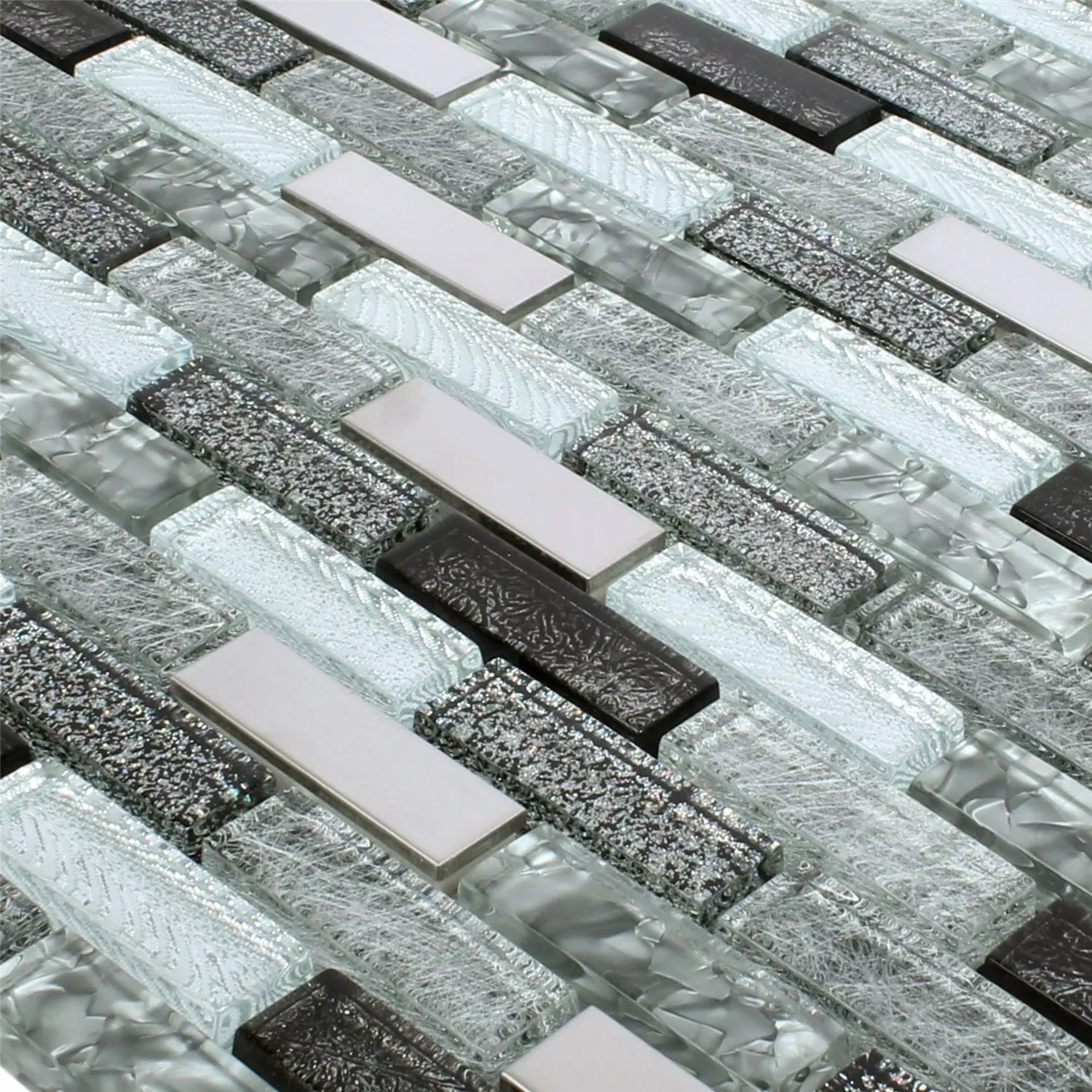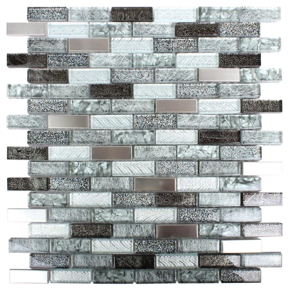 Die rechteckigen Mosaikfliesen aus Metall und Glas sind das perfekte Material