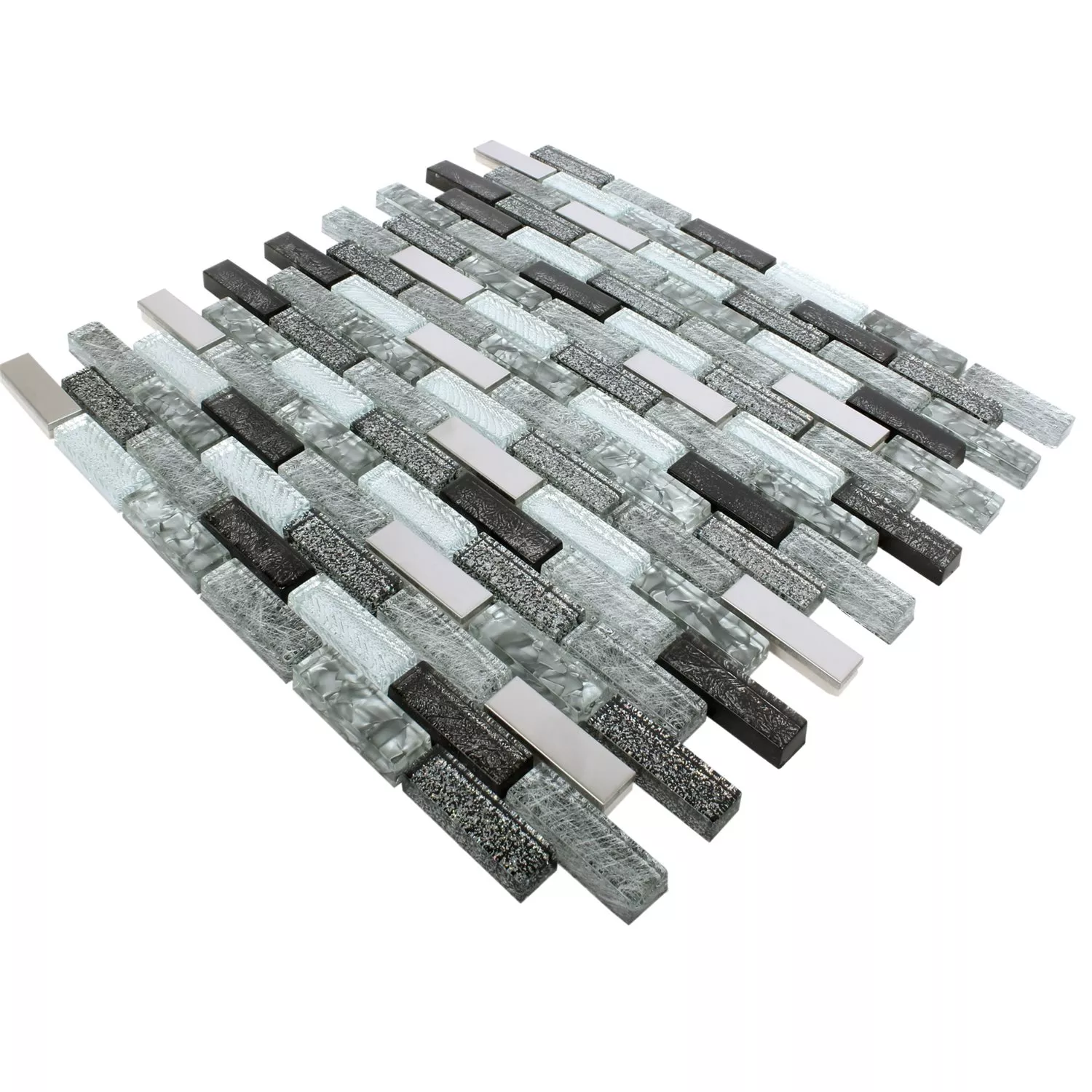 Mit Fliesen haben Sie ein perfektes Material für die Verschönerung von Böden und Wänden. Denn Fliesen sind pflegeleicht und hygienisch, da sie sich gut abwaschen lassen. Je nach Anspruch und Geschmack verleihen Sie so jedem Raum ein einzigartiges Aussehen. Mit den Mosaikfliesen Felicitas schaffen Sie in jedem Raum einen Eindruck von kühler Eleganz. Die rechteckigen Mosaikfliesen sind in den Farben Schwarz und Silber gehalten und eignen sich für den Innenbereich. Sie sind jedoch für Nassbereiche wie das Bad nicht zu empfehlen. Die Fliesen werden auf Matten angeboten und haben ca. 8,0 mm Stärke. Das Material aus Edelstahl und Glas verleiht dieser Fliese ihre glänzende Oberfläche und die verschiedenen Schattierungen in schwarz und grau sorgen für eine abwechslungsreiche und attraktive Optik.