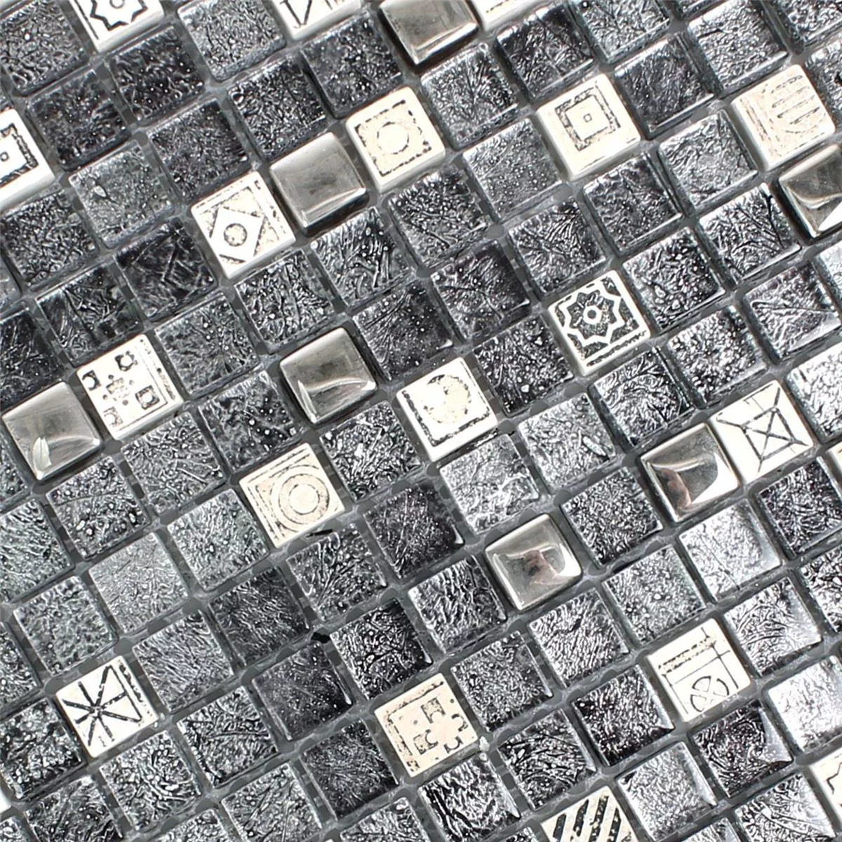 Durch die detailreiche Gestaltung wirken die Fliesen sehr edel. Da die einzelnen Mosaikteile sehr klein sind, bleibt der Anblick der Wand, die mit ihnen verkleidet ist, über lange Zeit interessant. Die verwendeten Farben (Weiß, Silber und Schwarz) sind gleichzeitig neutral.