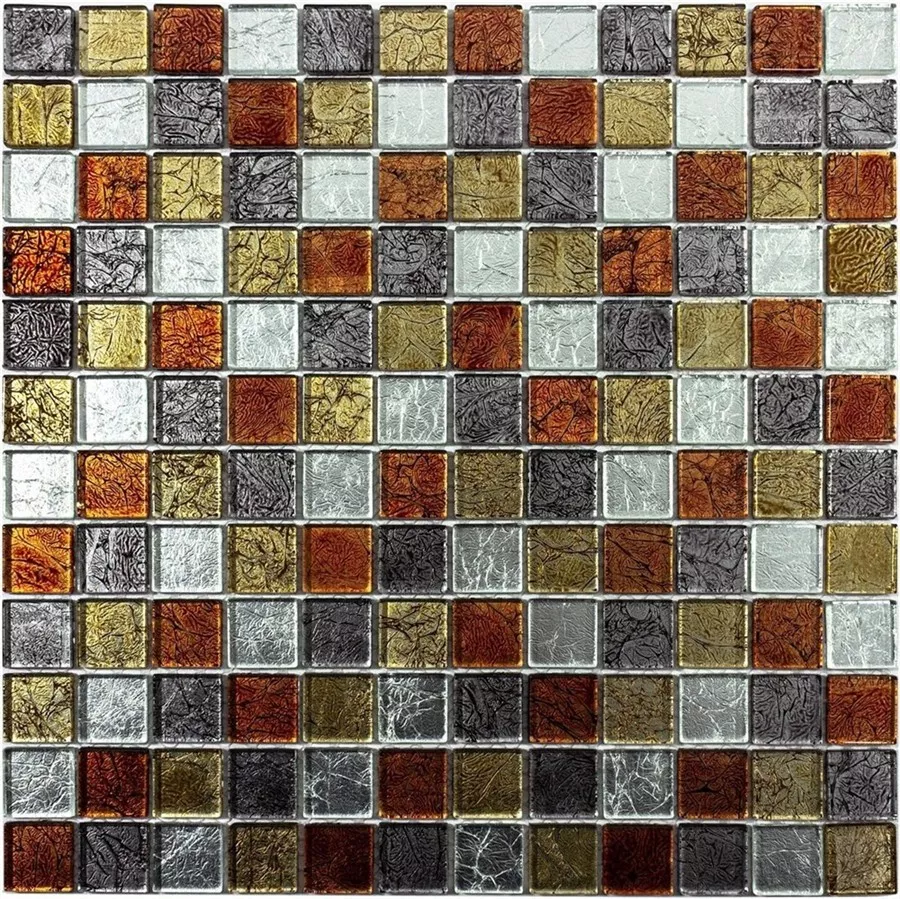 Mosaikfliesen Glas Bonnie Crystal Struktur Gold Silber Rot