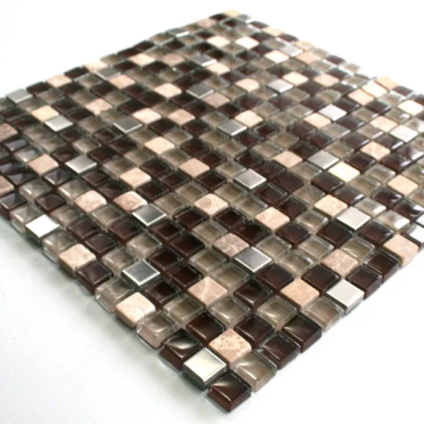 Mosaikfliesen Glas Marmor Edelstahl Braun Mix