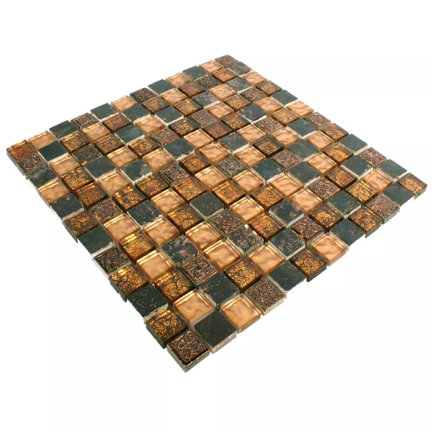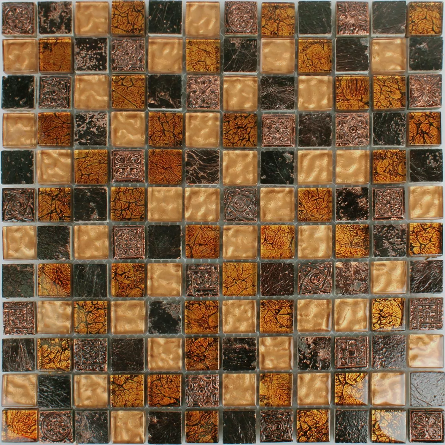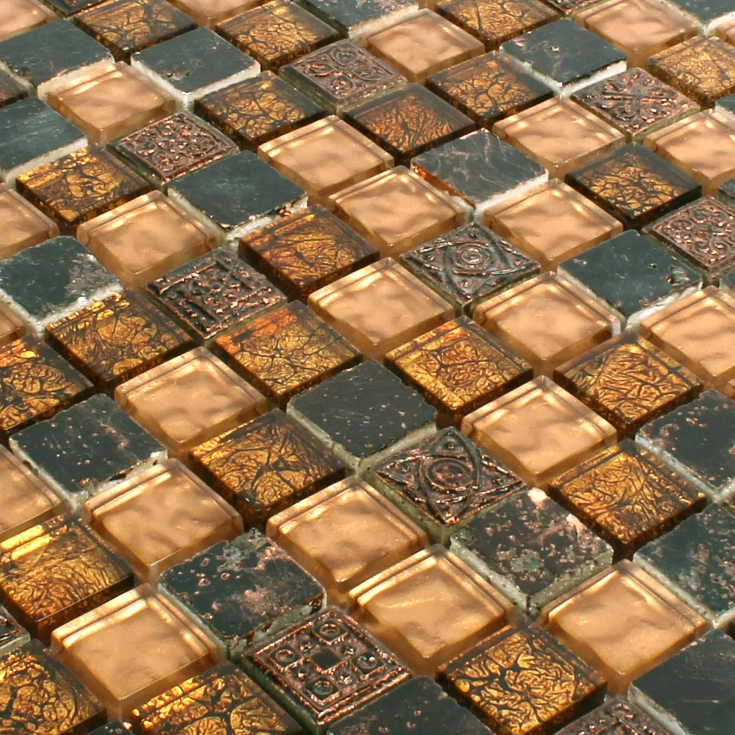 Die Mosaikfliesen Glas Naturstein Maya Brown Bögen sind netzverklebt. Verwendet werden können dieses Fliesen als Bordüren, wie auch als breitflächig angebrachte Wandfliesen. Als Bordüre verlegt sorgen die Fliesen für ein trendiges Highlight und lockern die Raumatmosphäre auf. Als breitflächig angebrachte Wandfliesen verlegt sorgen diese Fliesen für einen rustikalen Flair. Vor der Verklebung dieser Fliesen sollten diese erst einmal angelegt werden an die Wand, um das gewünschte Farbspiel zu überprüfen. Die Farbintensität dieser Fliesen kommt besonders stark durch die Reflektion bei Lichteinfall zum Vorschein. Diese Mosaikfliesen Glas Naturstein Maya helfen dabei über WC, Waschbecken, Badewanne bzw. Dusche und als Wandverkleidung über der Arbeitsplatte hinter Spüle und Herd. in Form von Bordüren oder Wandfliesen Akzente zu setzen. Der Umsetzung von kreativen Ideen ist entsprechend groß.
