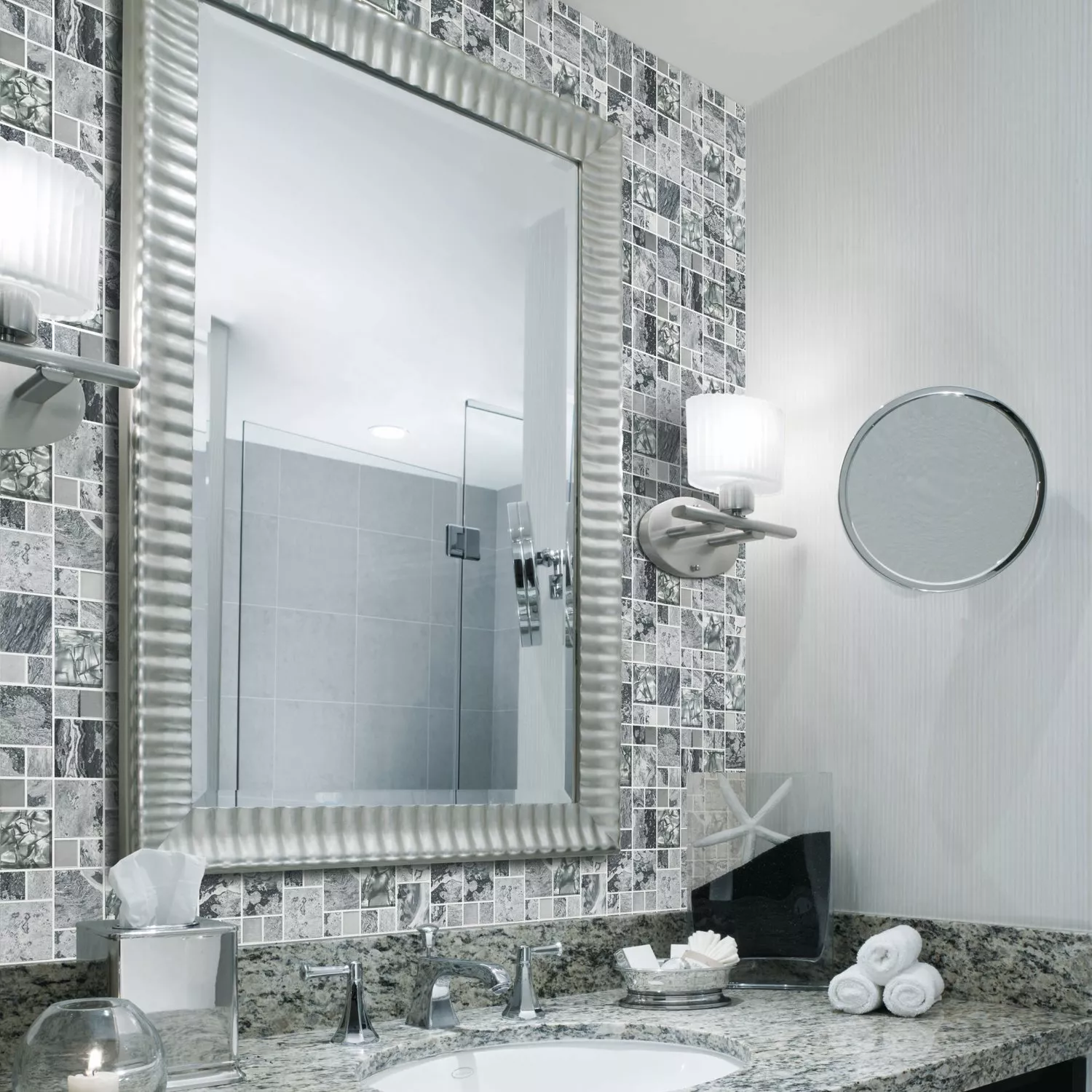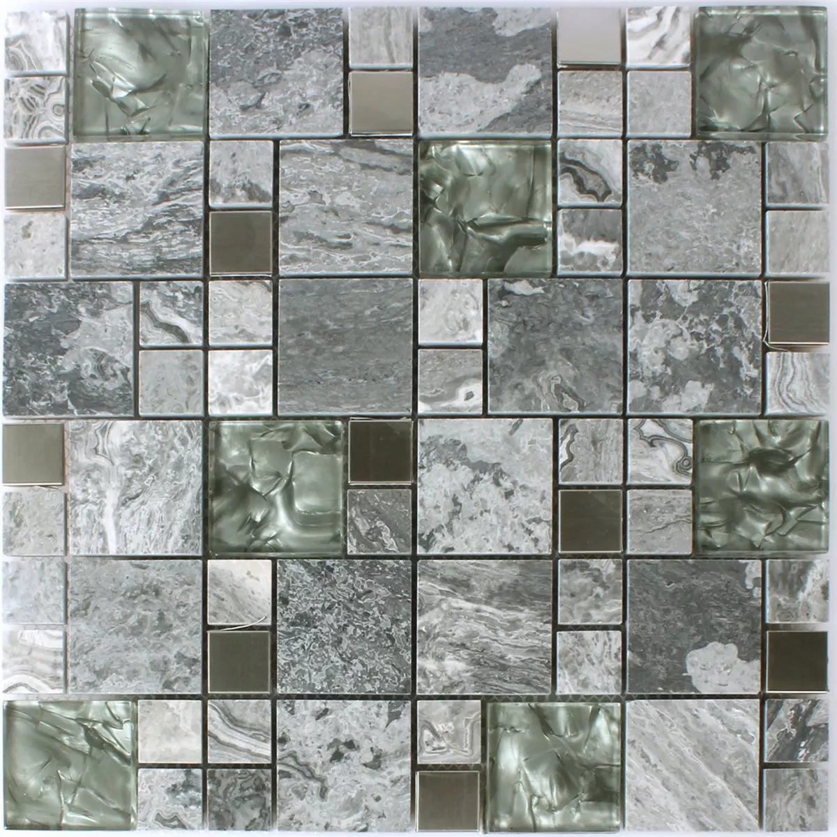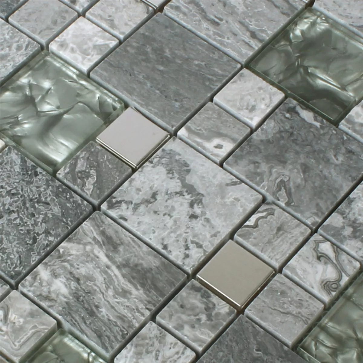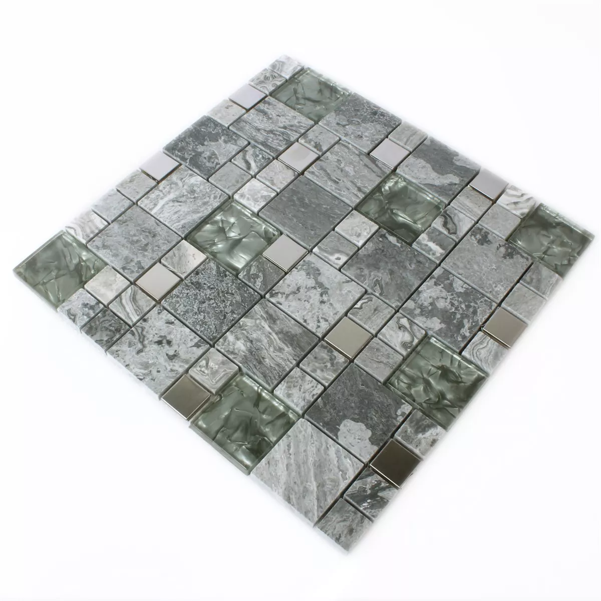 Mosaikfliesen Metall Glas Naturstein Mix Grau Silber