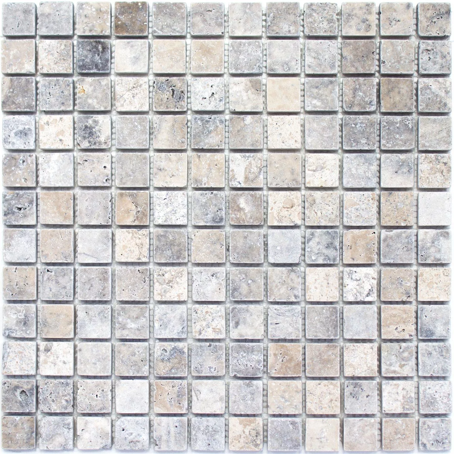 Diese Mosaikfliesen Nestor Silber 23 aus dem robusten Naturmaterial Travertin werden aus dem Stein direkt heraus geschnitten. Der Stein wirkt leicht silber schimmernd. Sie eignen sich exzellent für alle Außenbereiche. Das Material ist leicht strukturiert. Dies sorgt dafür, dass Wasser auf den Steinen schnell ablaufen kann und den Belag so schnell trittfest macht. Auch bei Frost wird der Stein bei leichter Feuchte nicht glatt sondern kann noch weiter genutzt werden.