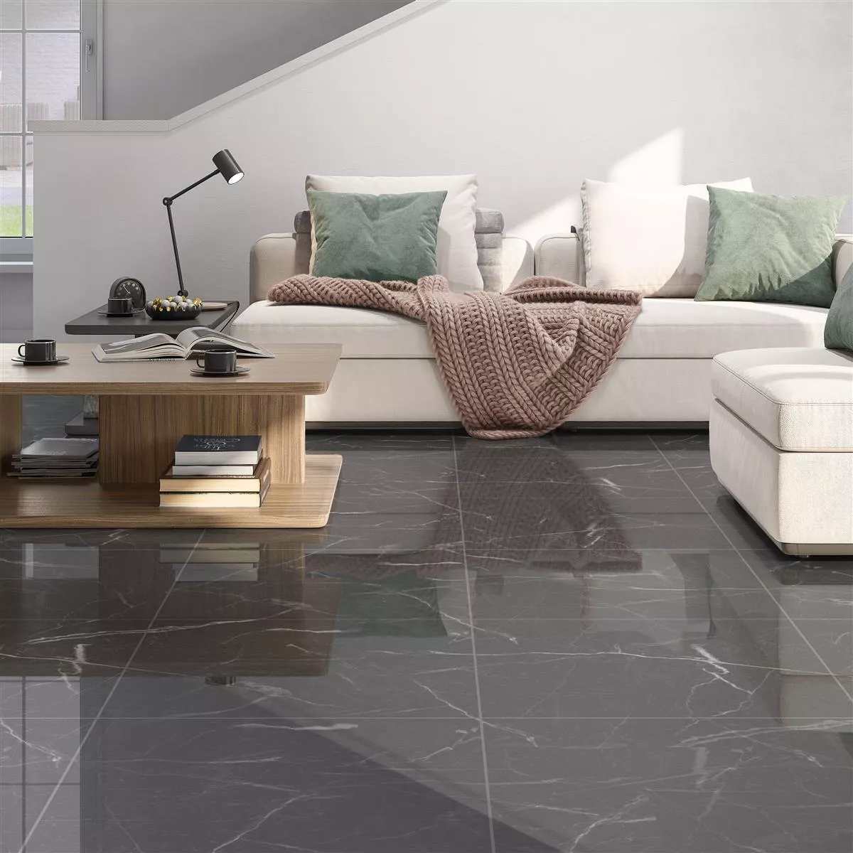 Muster von Bodenfliesen Santana Marmoroptik Poliert Dunkelgrau 60x60cm
