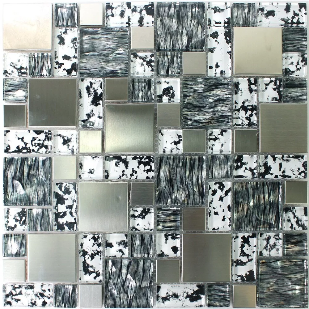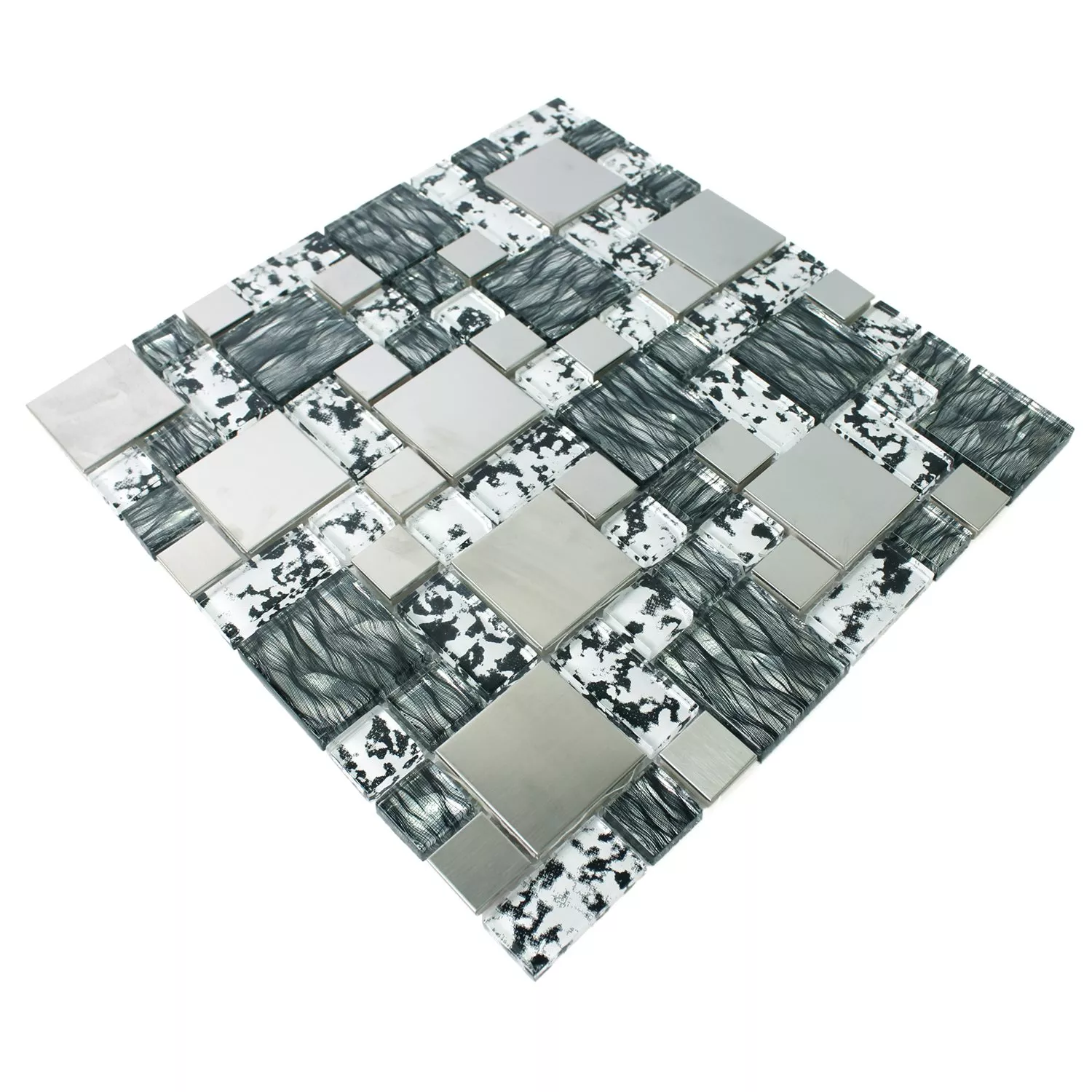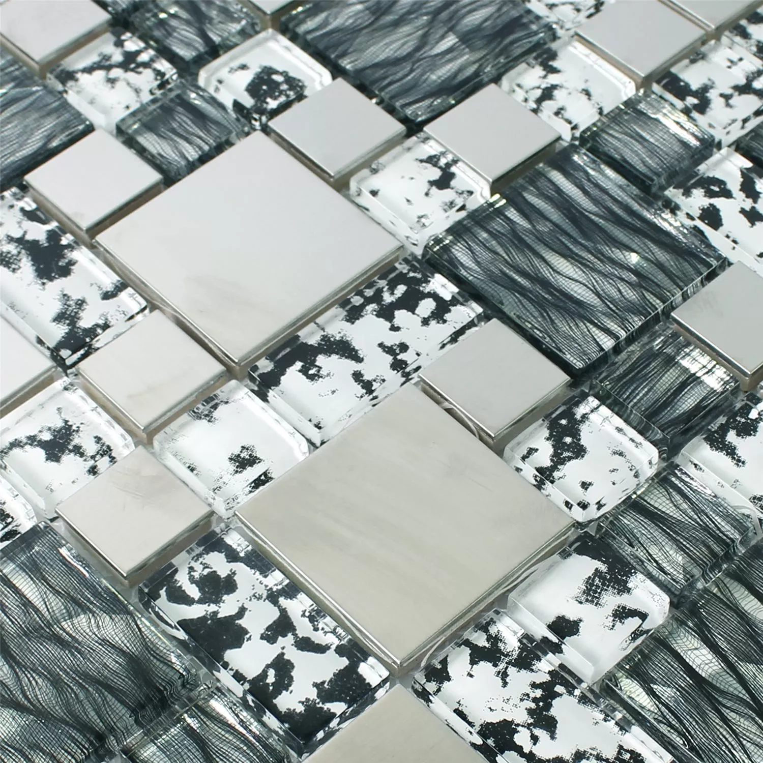 Muster von Glas Edelstahl Mosaik Rio Schwarz Silber Weiss