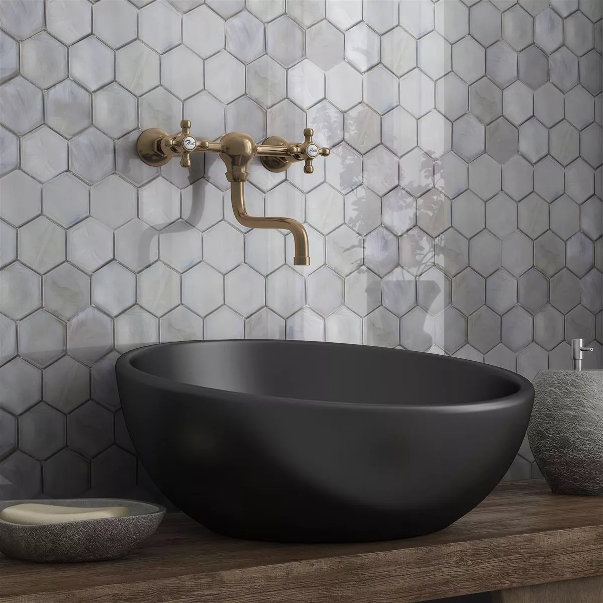 Muster von Glasmosaik Fliesen Andalucia Hexagon Grau