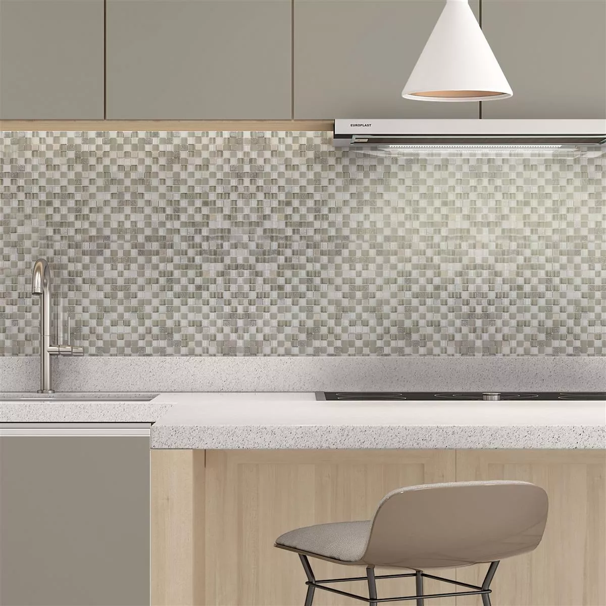 Muster von Glasmosaik Fliesen Delicias Glas Naturstein Mix