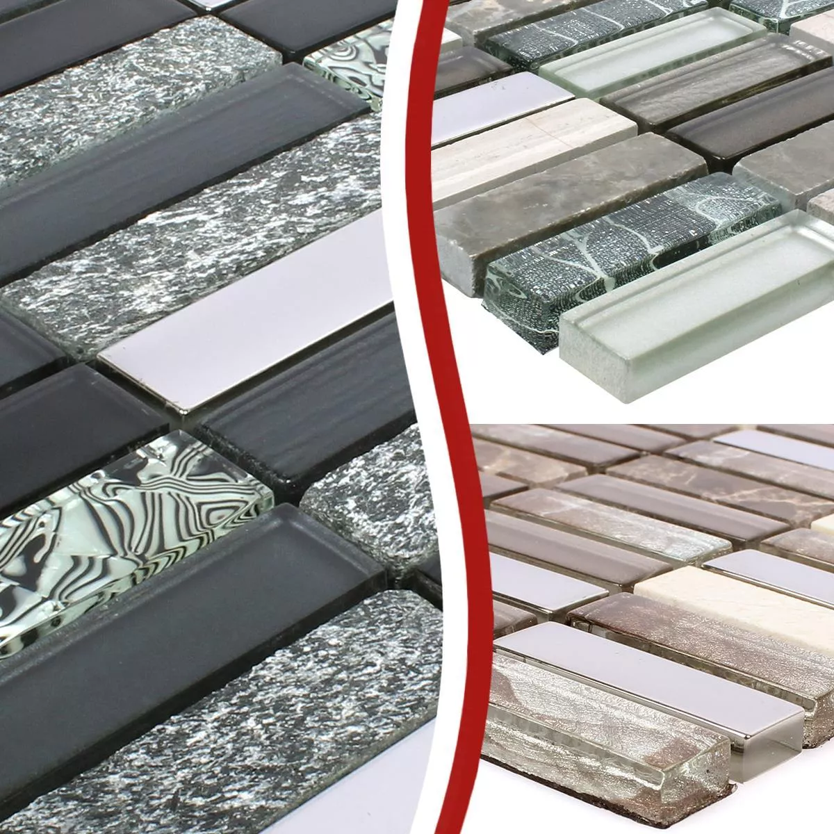 Muster von Mosaikfliesen Magia Glas Naturstein Mix Braun Stäbchen