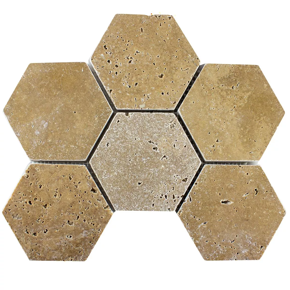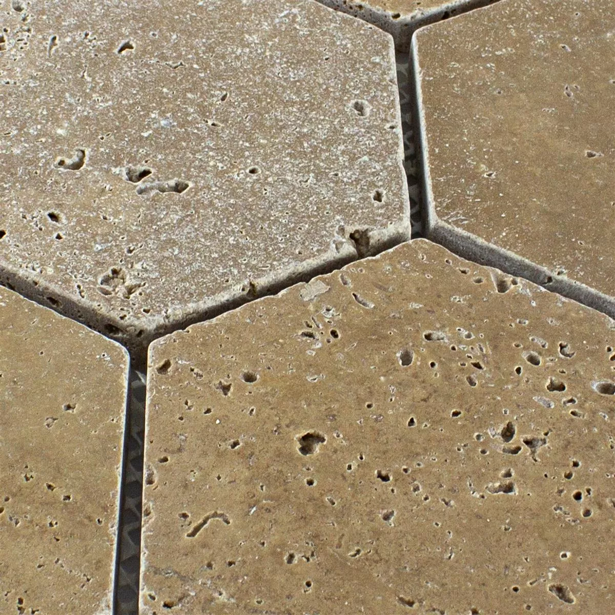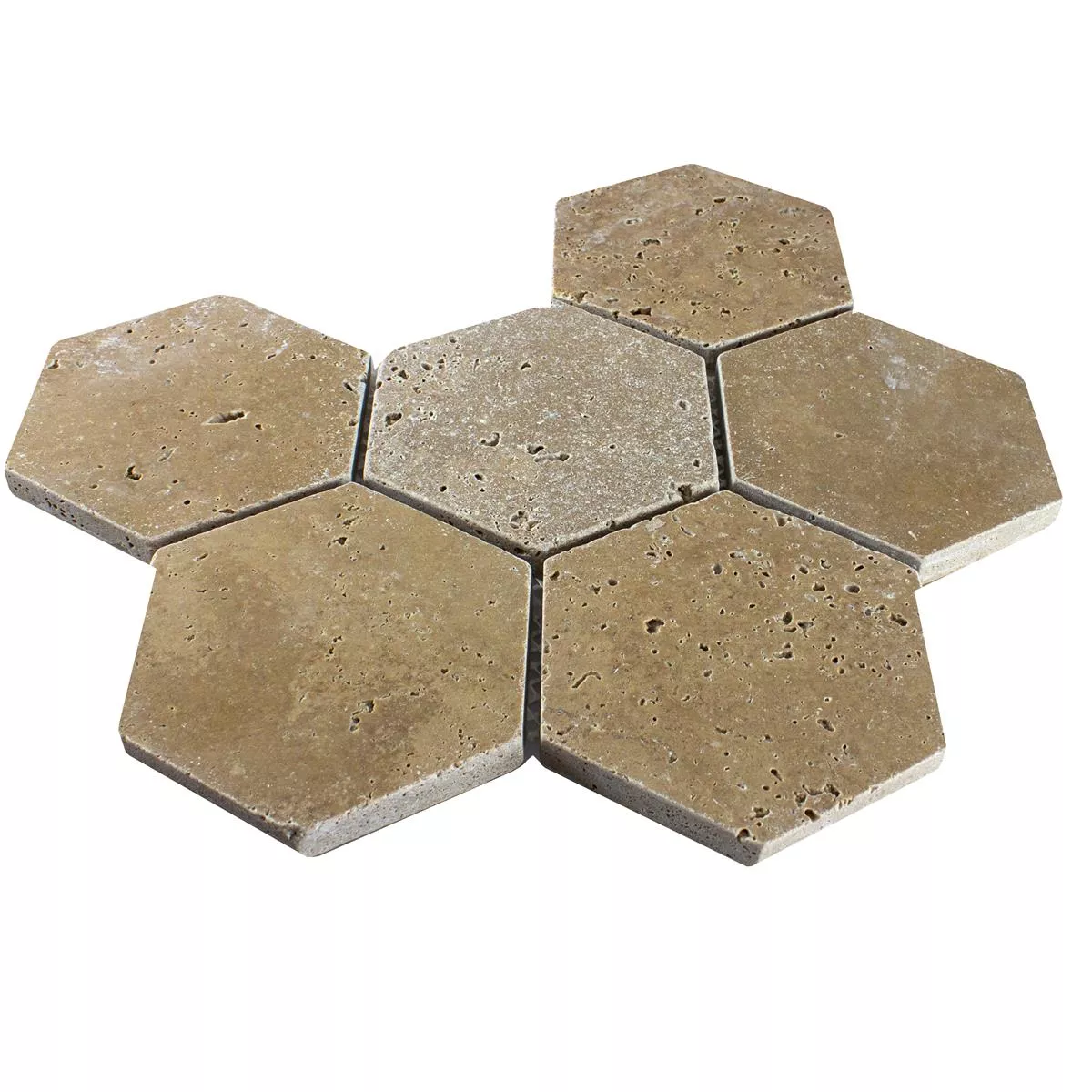 Muster von Travertin Naturstein Mosaikfliesen Mercado Sechseck Braun