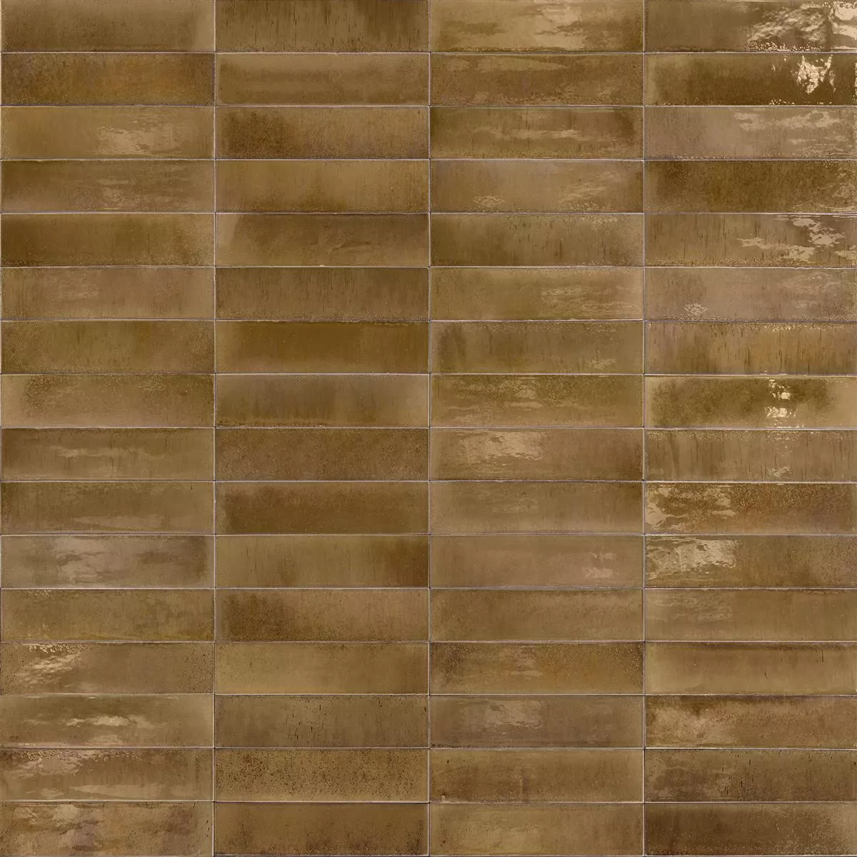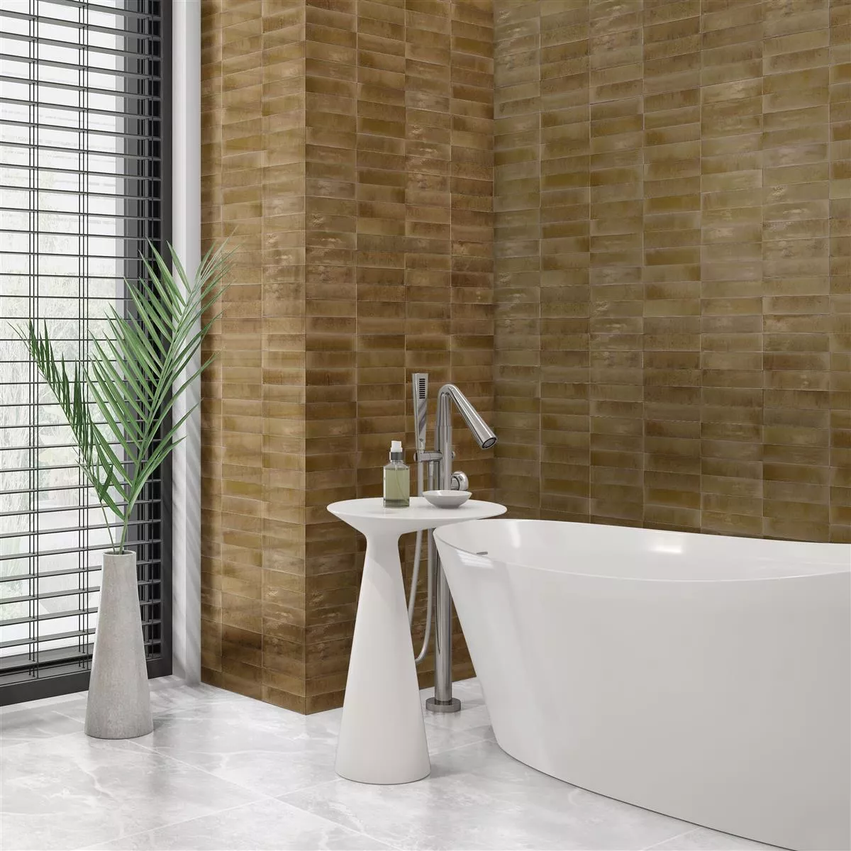 Muster von Wandfliesen Laguna Glänzend Gewellt Braun 6x24cm