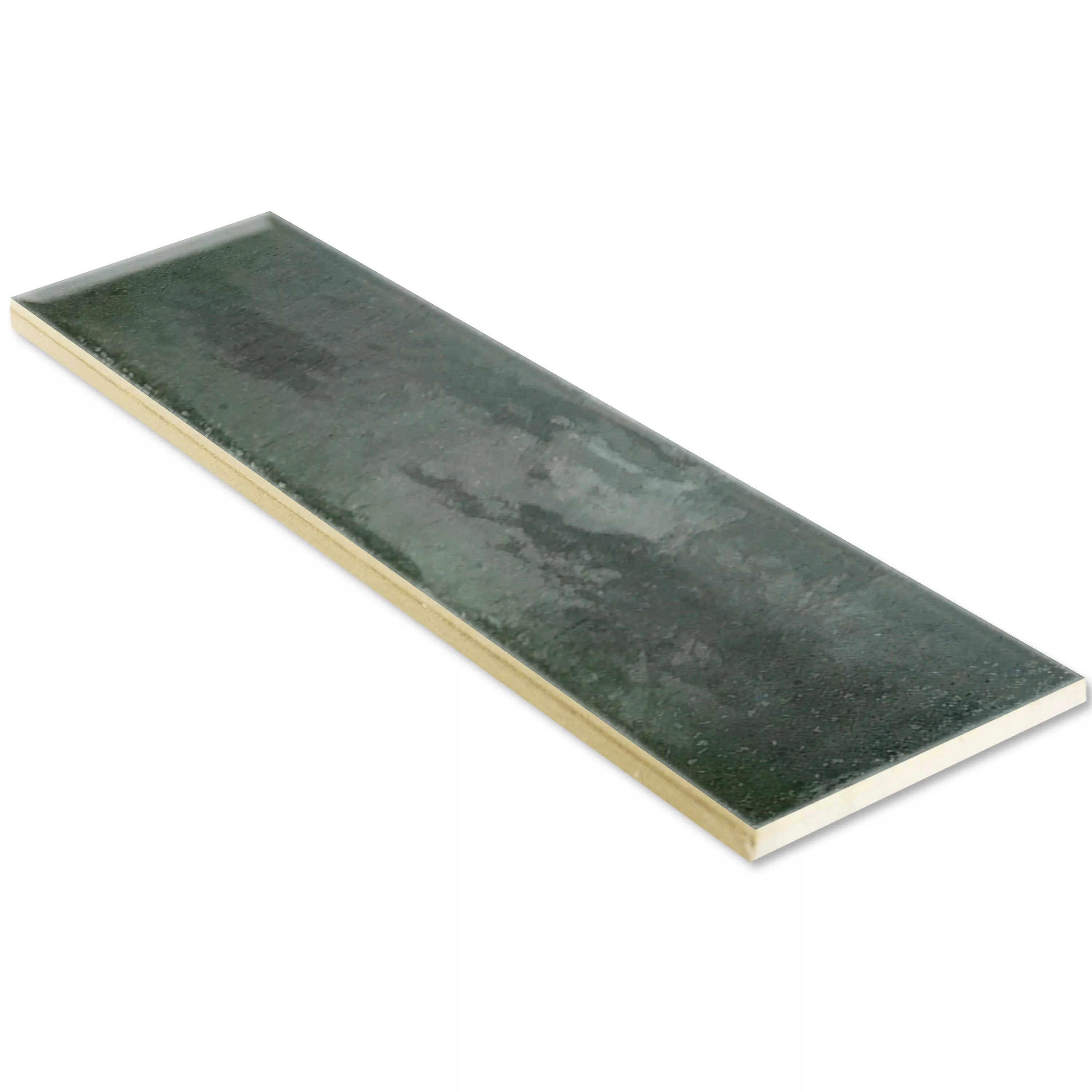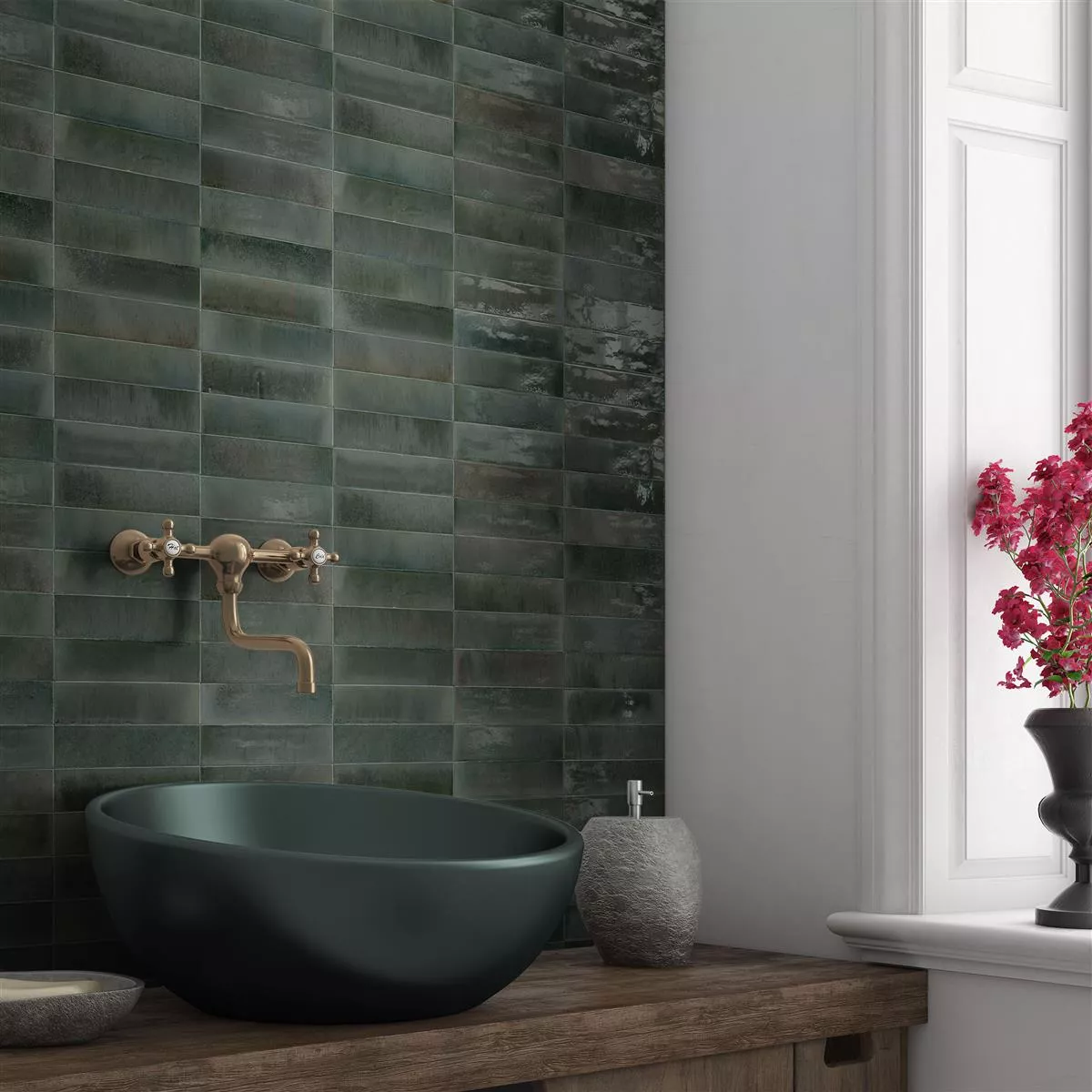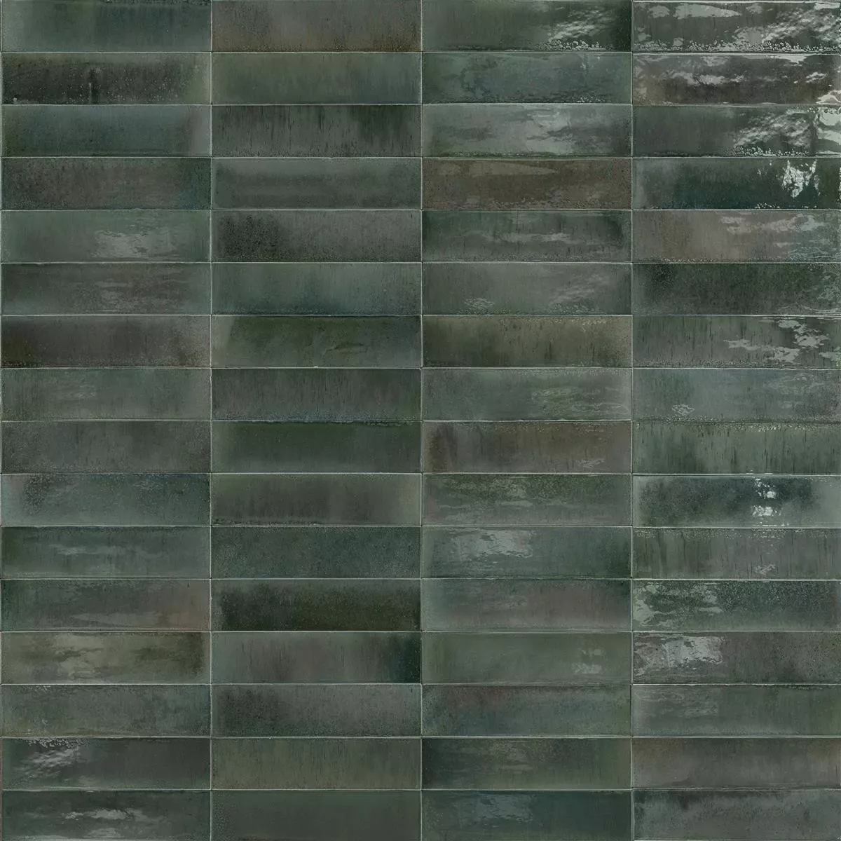 Muster von Wandfliesen Laguna Glänzend Gewellt Dunkelgrün 6x24cm