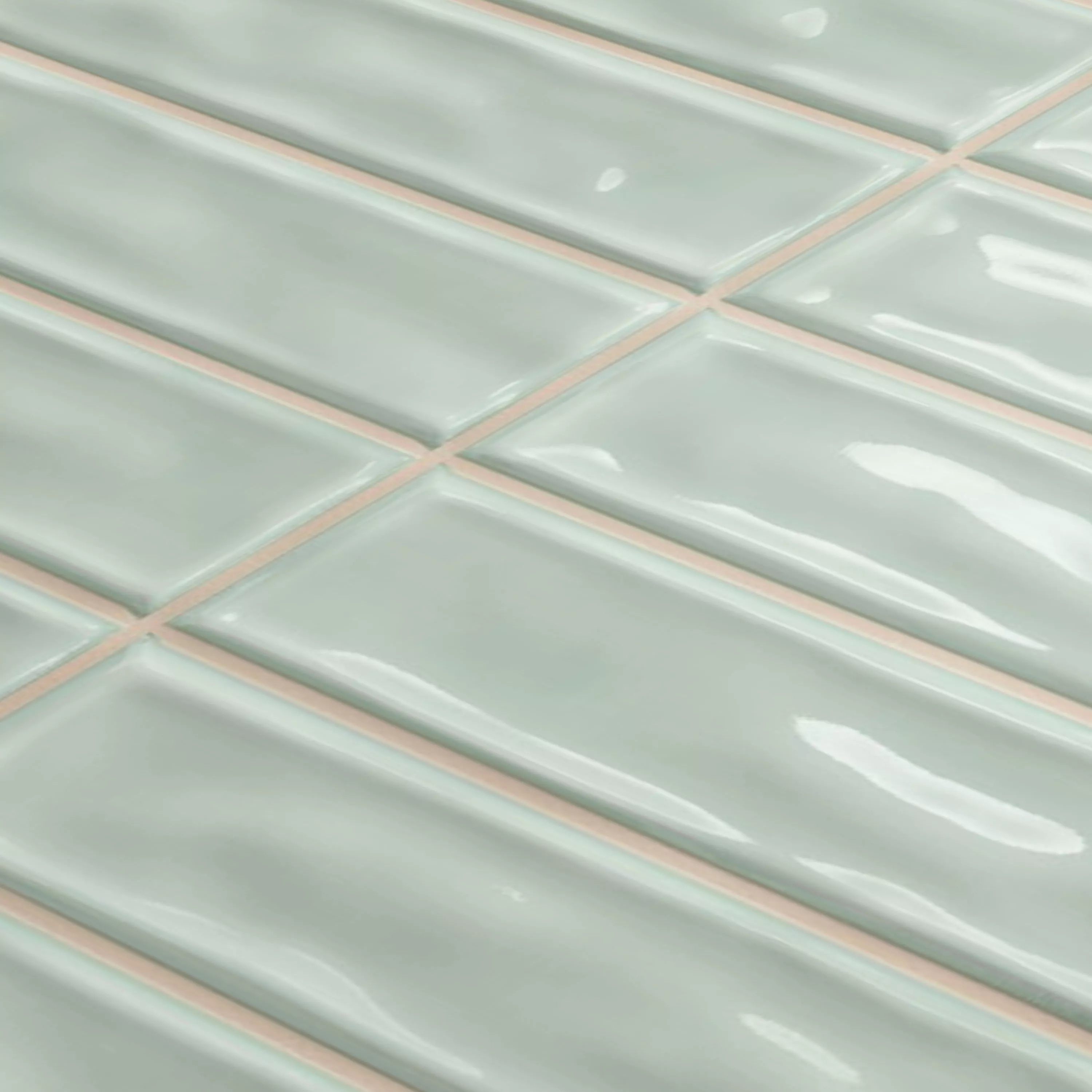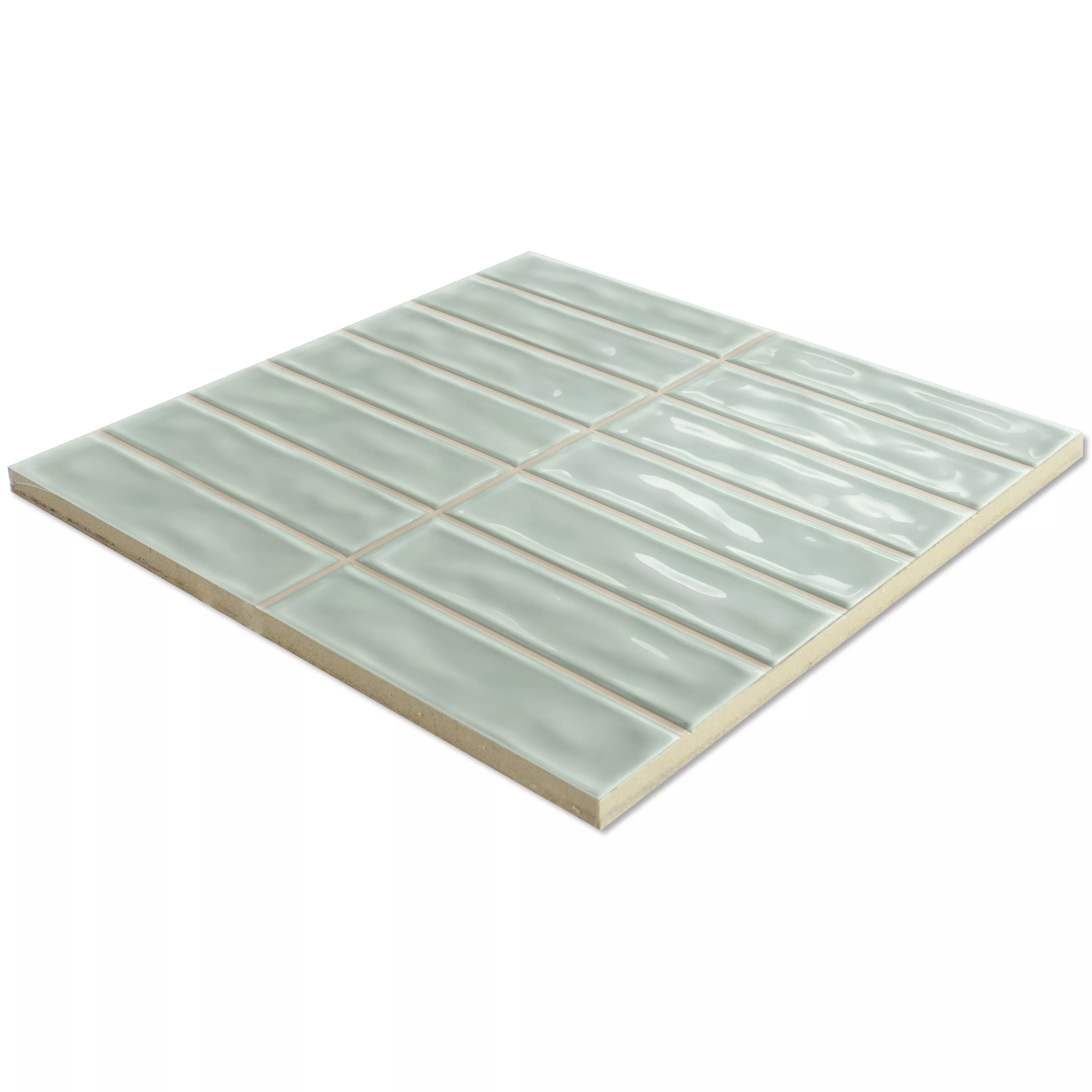 Muster von Wandfliesen Verbania Stäbchen Glänzend Gewellt Türkis 20x20cm