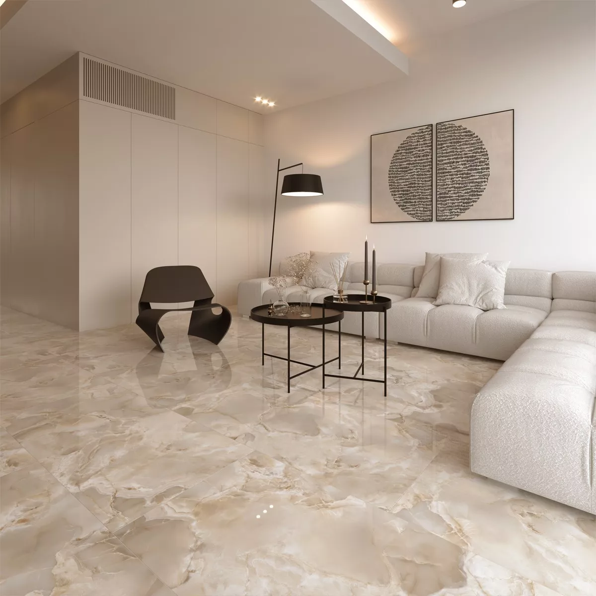Die Länge von 60 cm unterstützt eine elegante und klare Ausstrahlung der Fliese. Neben dem atemberaubendem Grau, addiert das sanfte Glänzen der Polierten Oberfläche einen extra Hauch von Exklusivität zu Ihrem Raum.