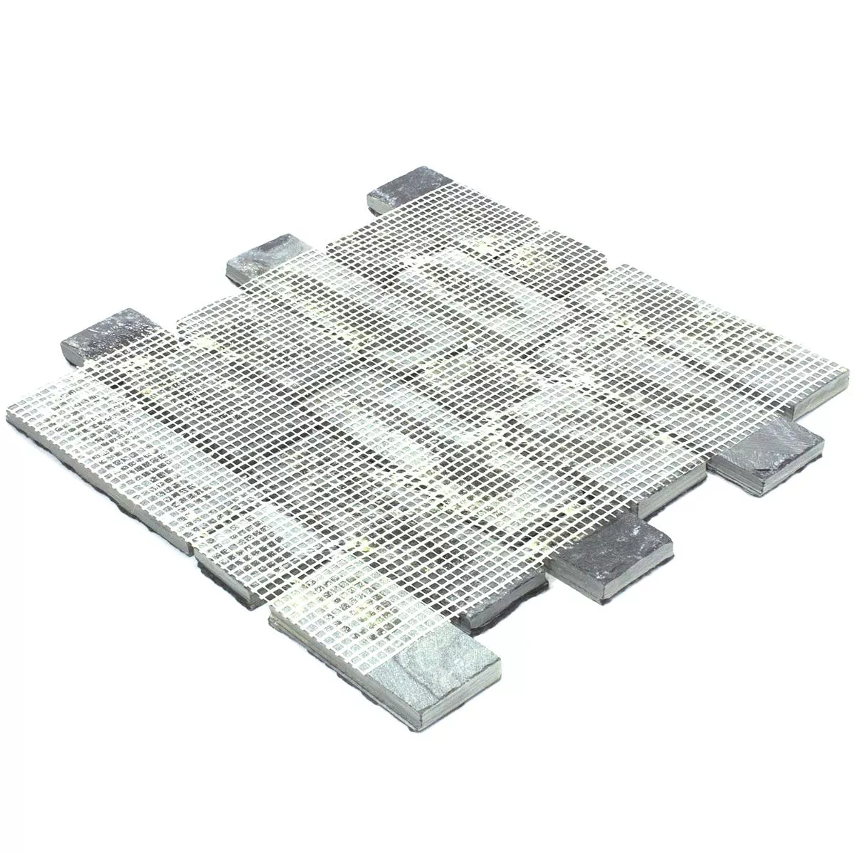 Die Verwendung von Schiefer und Naturstein verleiht diesen Fliesen eine strukturierte Oberfläche und ein mattes Finish, das die natürliche Schönheit der Steine hervorhebt. Die verschiedenen Steingrößen, darunter 50x46mm, 50x96mm und 50x146mm, erzeugen ein faszinierendes Muster.