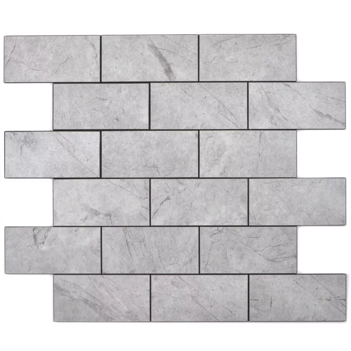 Die Mosaikfliesen sind aus Vinyl gefertigt und besitzen die Abmessungen 49 x 98 mm. Sie sind 4 Millimeter stark und haben eine matte Oberfläche. Die grauen Fliesen sind selbstklebend, sodass sie kinderleicht zu einem Mosaik verlegbar sind. Sie sind auf einer Matte verklebt.Die rechteckigen Vinylmosaikfliesen eignen sich zur Verlegung als Wand- und Mosaikfliese. Sie ermöglichen die Gestaltung von einem individuellen Raumambiente ohne Fliesenleger.