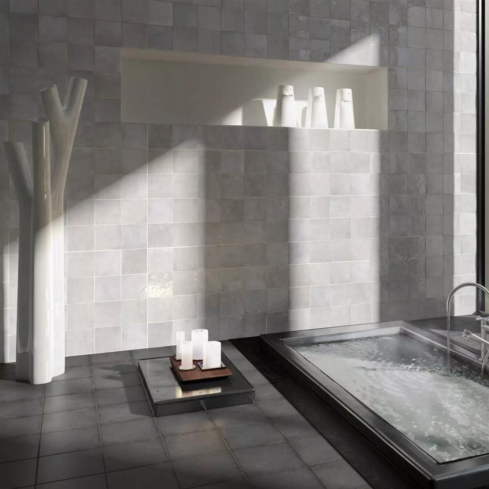Wählen Sie die Concord Wandfliese in Hellgrau, um Ihren Innenräumen mit ihrer glänzenden Oberfläche und der einzigartigen Wellenoptik eine elegante und moderne Atmosphäre zu verleihen.