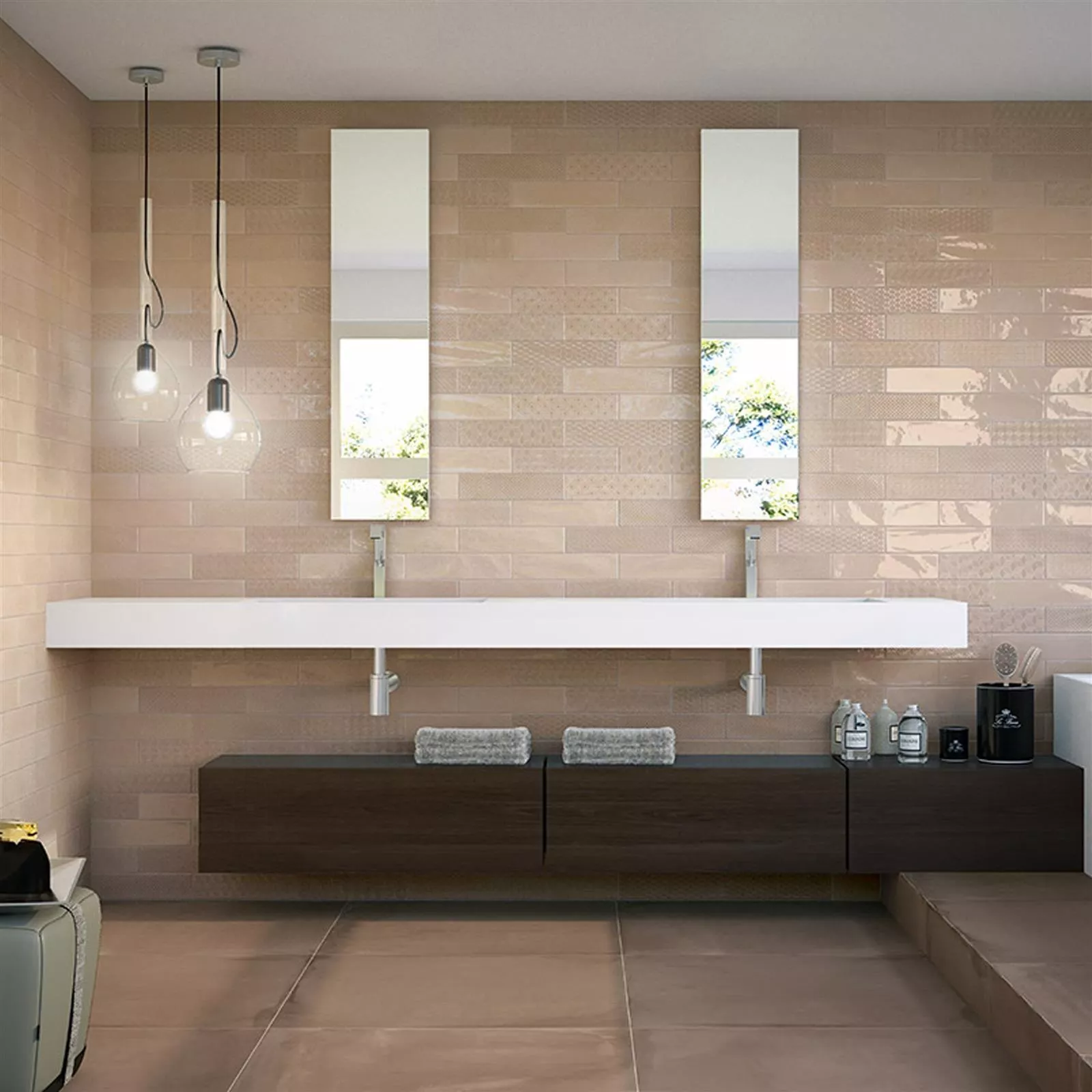 Die Wandfliese Conway verzaubern Ihr Bad und hat ein wunderschönes, gewelltes Oberflächen Muster. Diese Wandfliese in der Farbe Hellbraun die Oberfläche der Fliesen ist glänzend gehalten und das Material dieser Wandfliese besteht aus lang haltbarem Steingut. Das Material ist sehr robust und das Oberflächen Muster lässt jedes Bad erstrahlen.