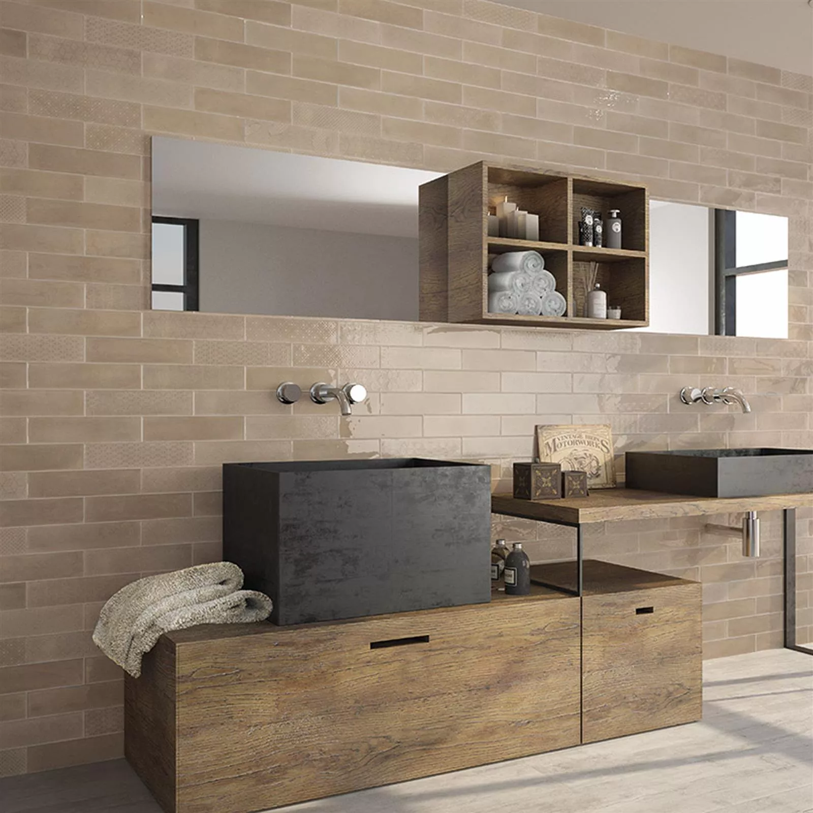 Wandfliesen Conway Gewellt 7,5x30cm Hellbraun